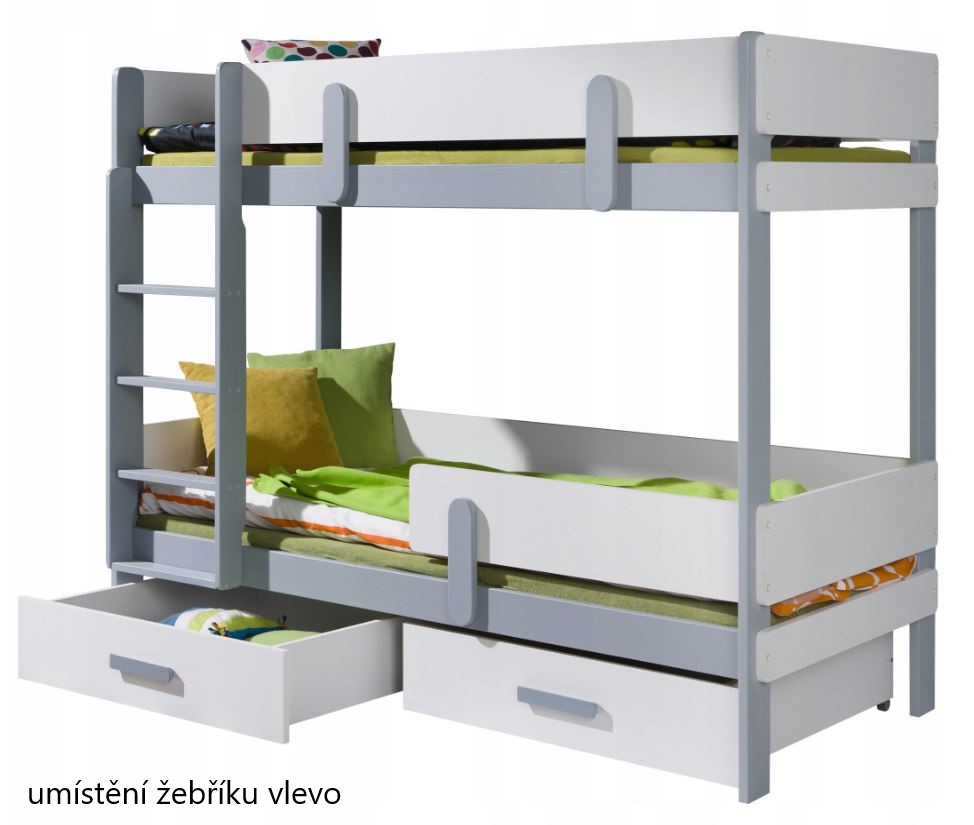 Maximální doporučené zatížení postele je 80 kg pro horní lůžko a 120 kg pro dolní lůžko. Konstrukce postele je uzpůsobena tak, aby zabránila pádu dítěte, a to díky ochranným bariérám. Vaše dítě se tak bude cítit v klidu a bezpečí. Součástí postele je pevný žebřík umístěný na pravé nebo levé straně postele. Dětská patrová postel vytváří komplexní prvek, který se bude vyjímat v každém dětském pokoji. Patrová postel ETTORE nejen šetří místo v pokoji, ale zároveň poskytuje plnohodnotný prostor pro spánek a odpočinek vašich dětí.