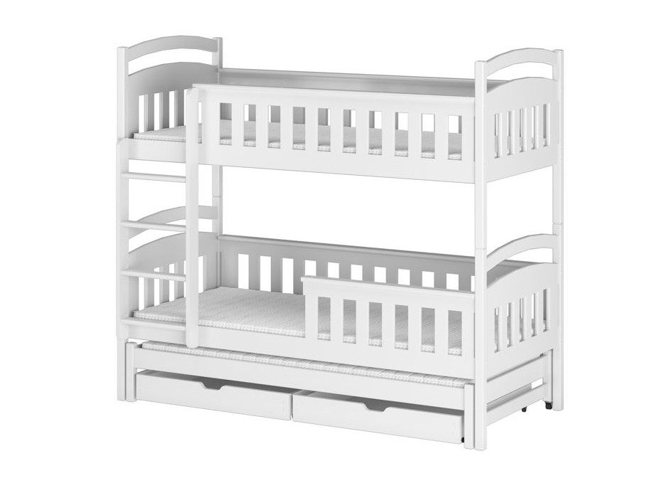 Dětská patrová postel z masivu borovice HERMIONA s přistýlkou a šuplíky - 200x90 cm - bílá