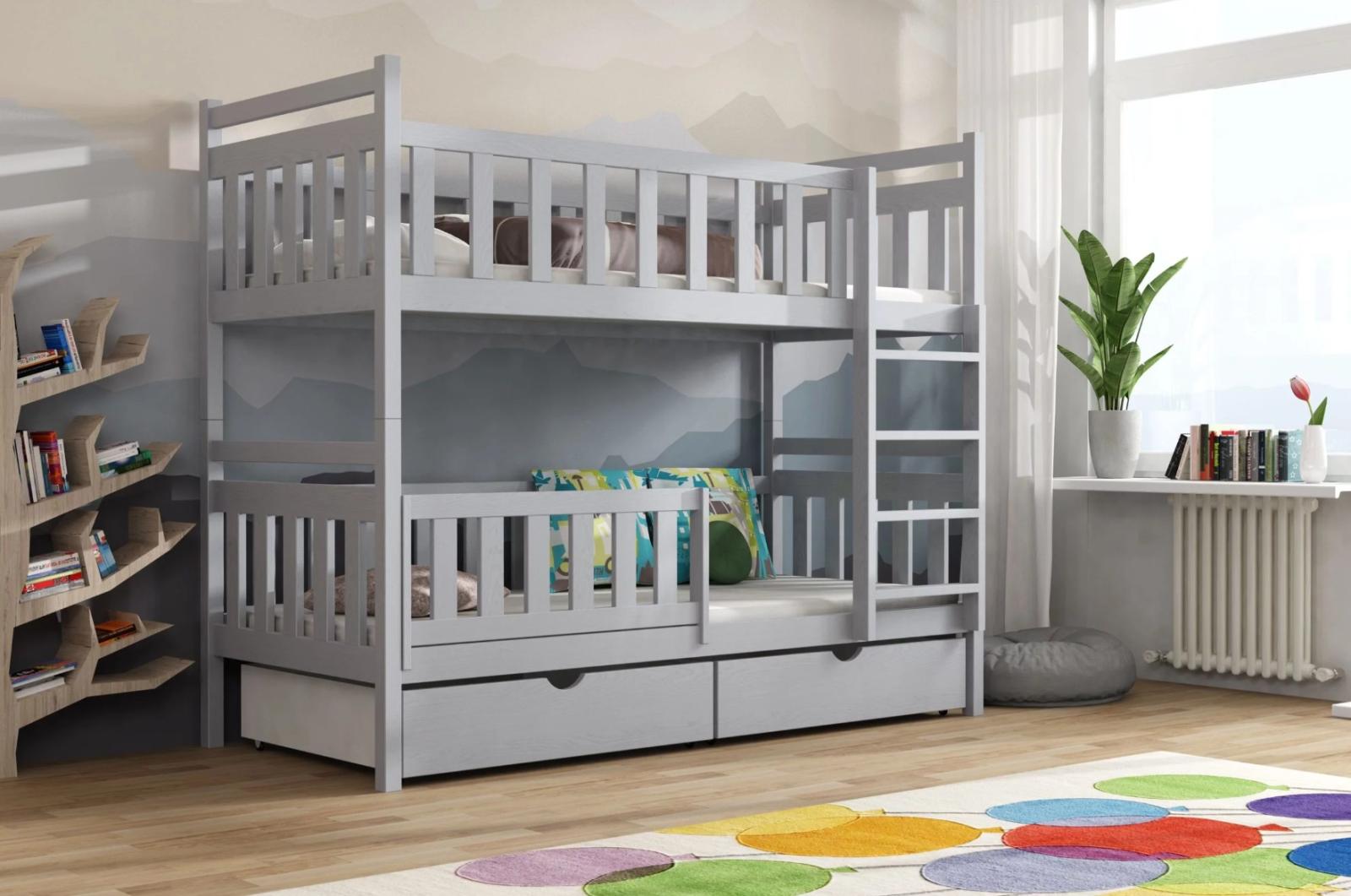 Dětská patrová postel z masivu borovice KAREL se šuplíky - 200x90 cm - ŠEDÁ