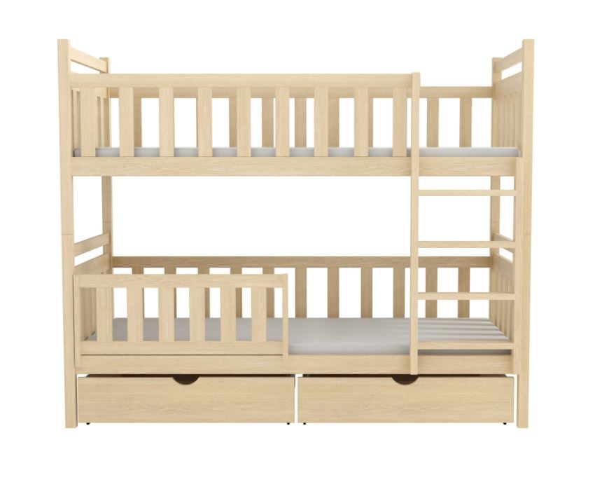 Patrová postel Karel je perfektním řešením pro sourozence sdílející dětský pokojíček. Model Karel zaručuje úsporu místa a zároveň zajišťuje klidný spánek pro obě děti. Pevná konstrukce z nejkvalitnějšího dřeva zajišťuje bezpečnost i při nejintenzivnější hře. U bočnic a čel je šířka použitého materiálu 2,6 cm. Karel je vysoká patrová postel, která zajišťuje bezpečnost díky vysokým čelům a zábranám, které chrání uživatele před pády. Žebřík vedoucí do patra je stabilní a široký, což umožňuje jeho bezpečné používání i malým dětem. Postel je vyrobena z borovicového dřeva a je pokryta ekologickým lakem na vodní bázi, díky čemuž je zcela přírodní a zdravotně nezávadná pro všechny členy domácnosti. Postel je dodávána včetně dvou praktických šuplíků, které poskytují dostatek prostoru k uložení lůžkovin. Součástí postele jsou také kvalitní rošty. Spodní lůžko je doplněno o ochrannou bariérku s možností univerzální montáže na pravou i levou stranu. Bariérku lze také zcela odstranit, jakmile ji dítě již nepotřebuje.