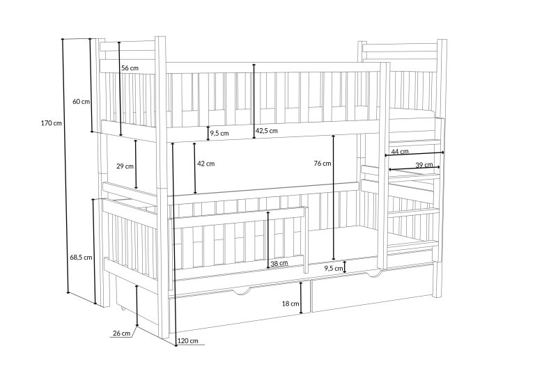 - Celková výška postele: 170 cm