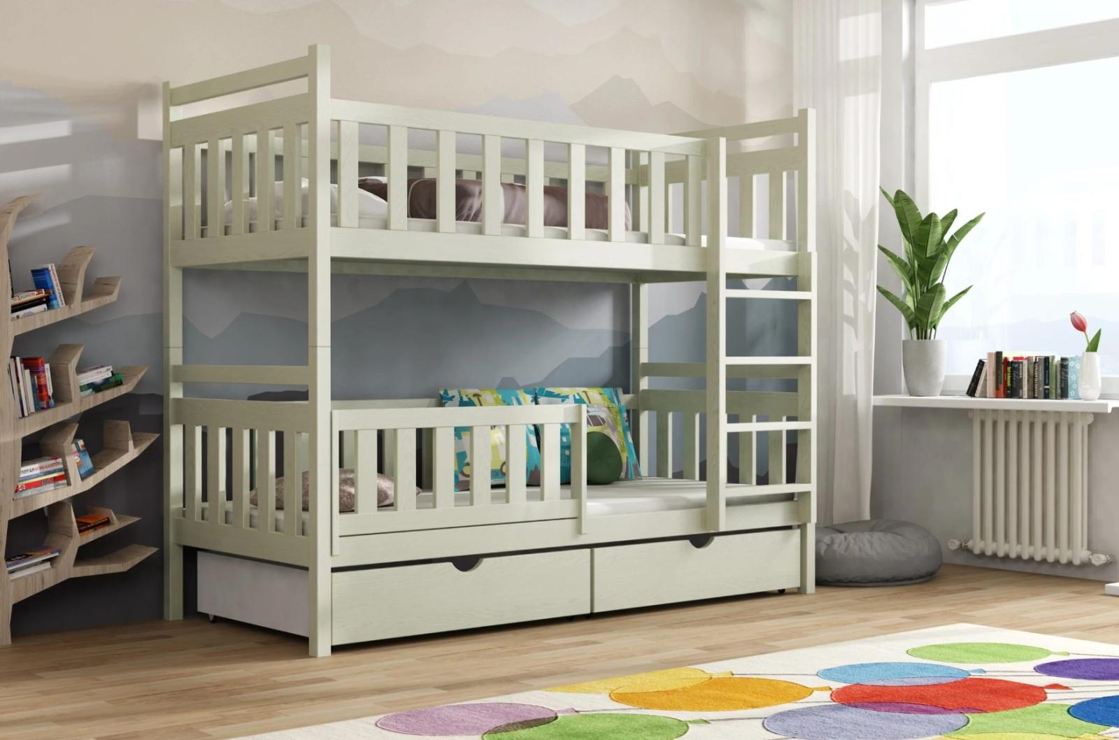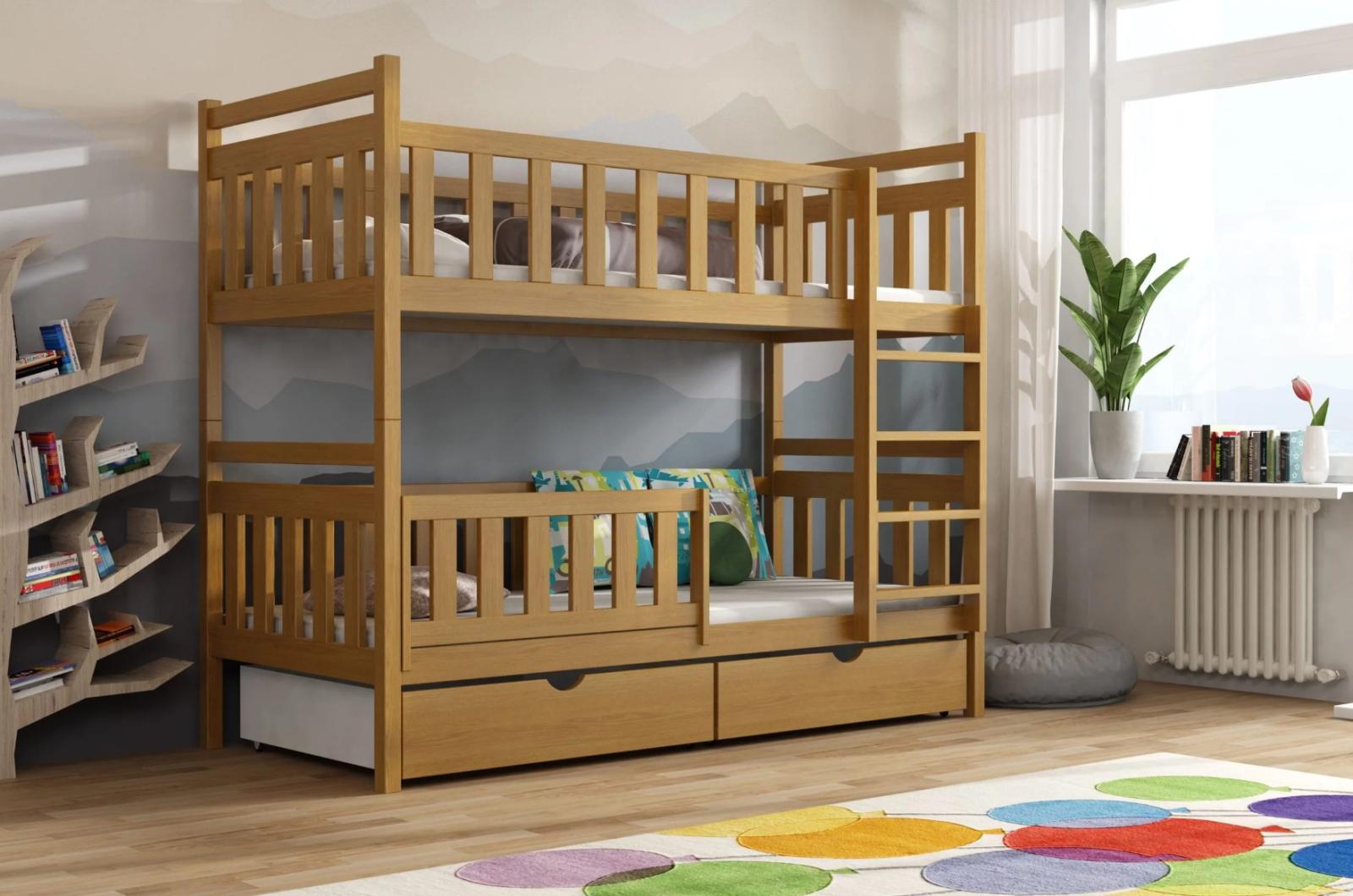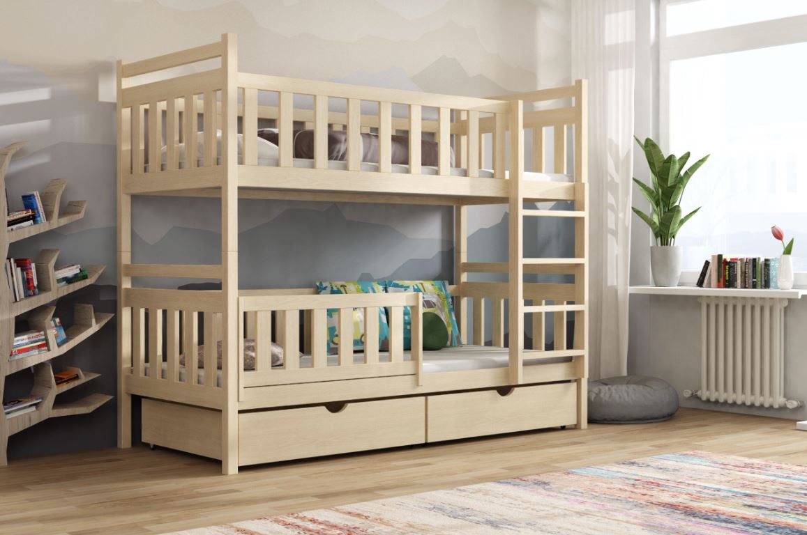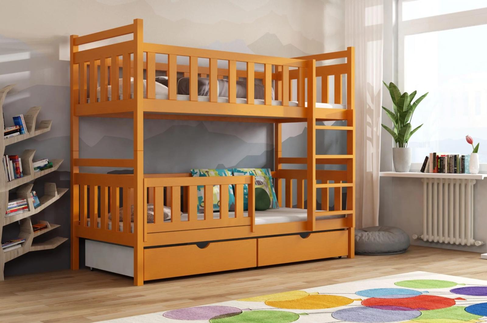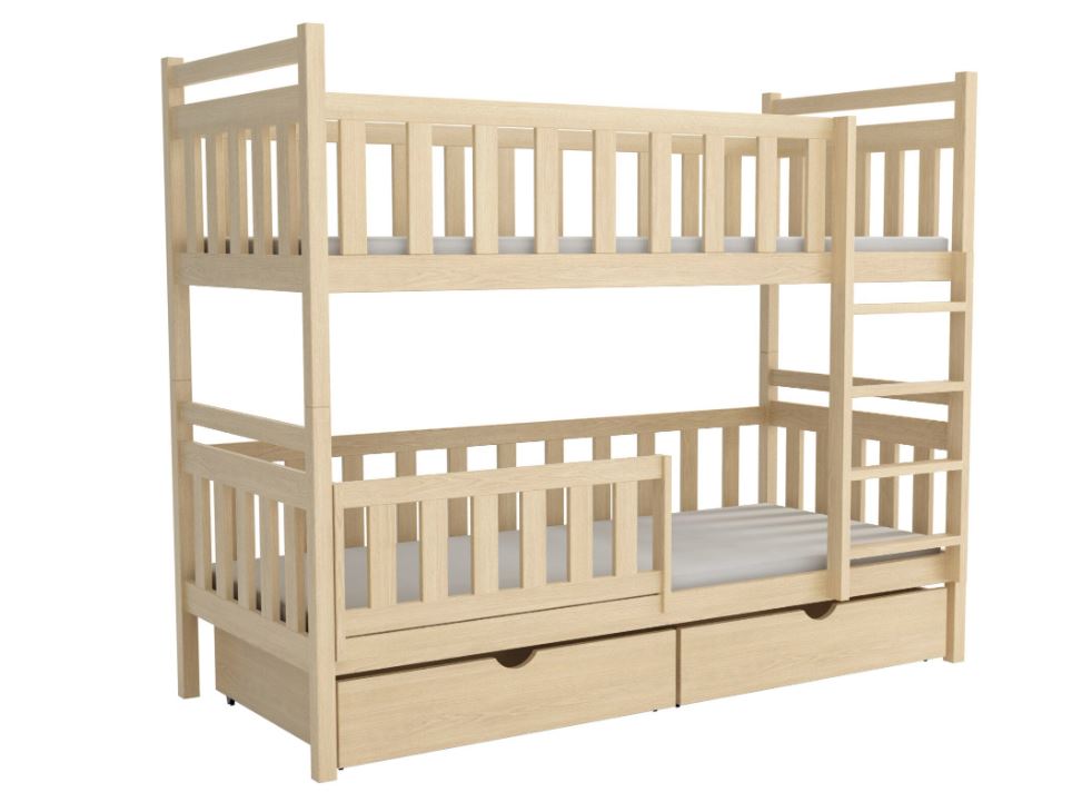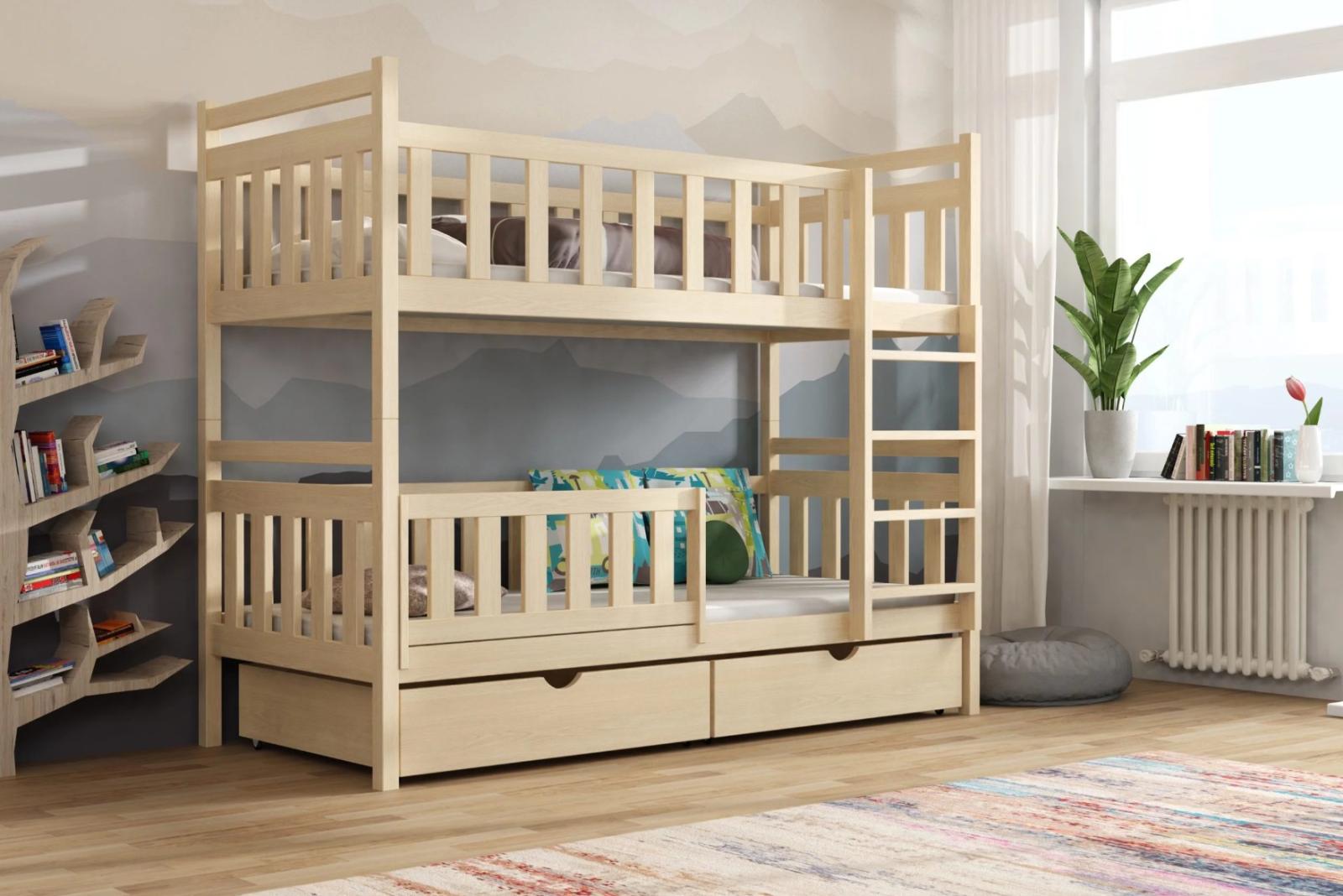 Dětská patrová postel z masivu borovice KAREL se šuplíky - 200x90 cm