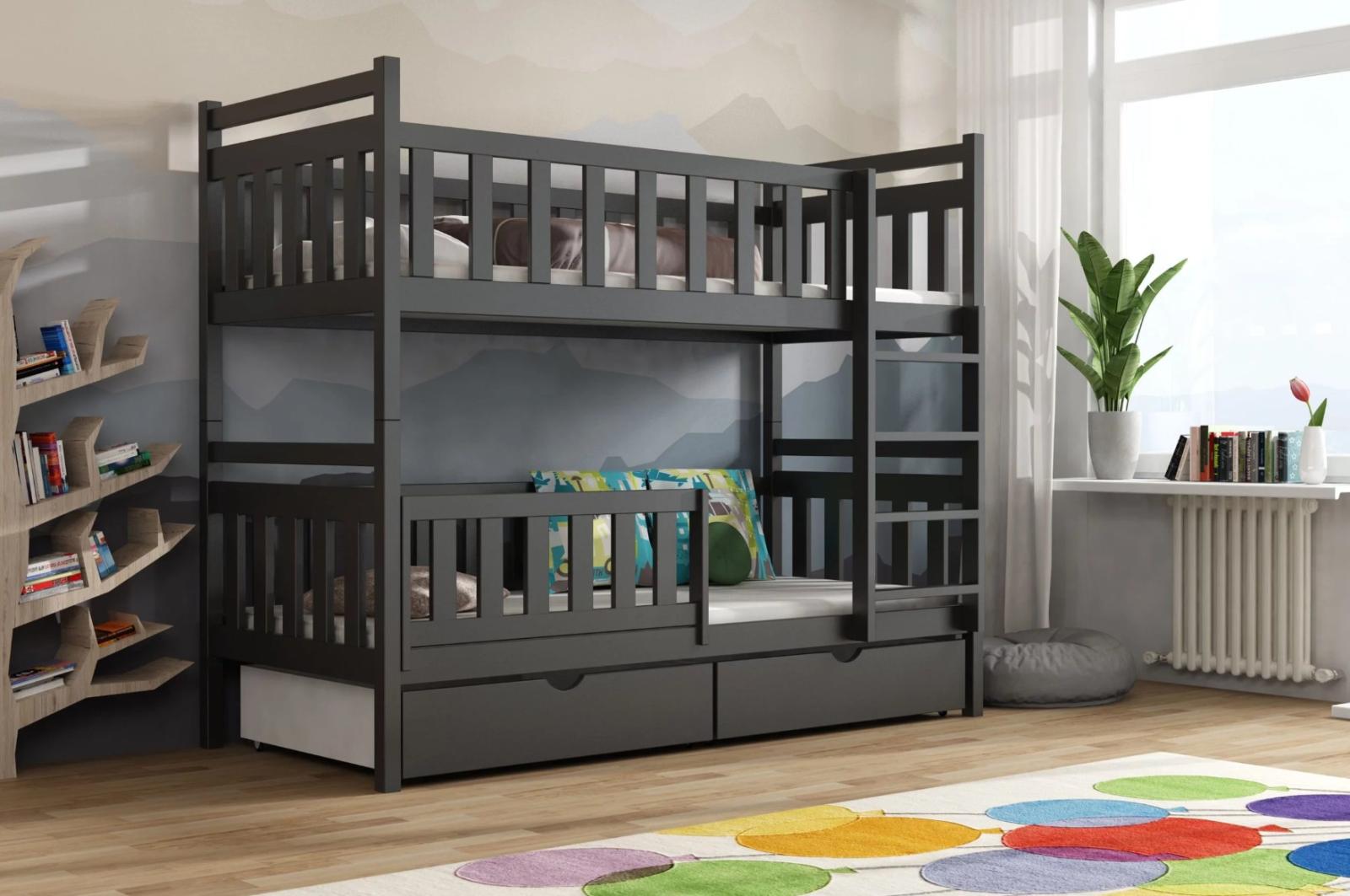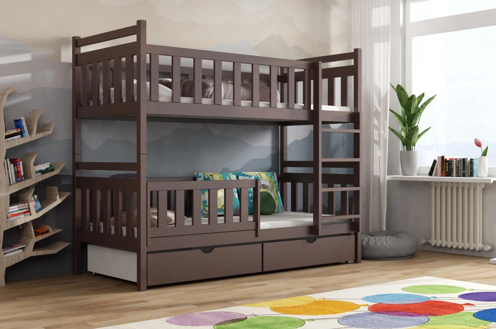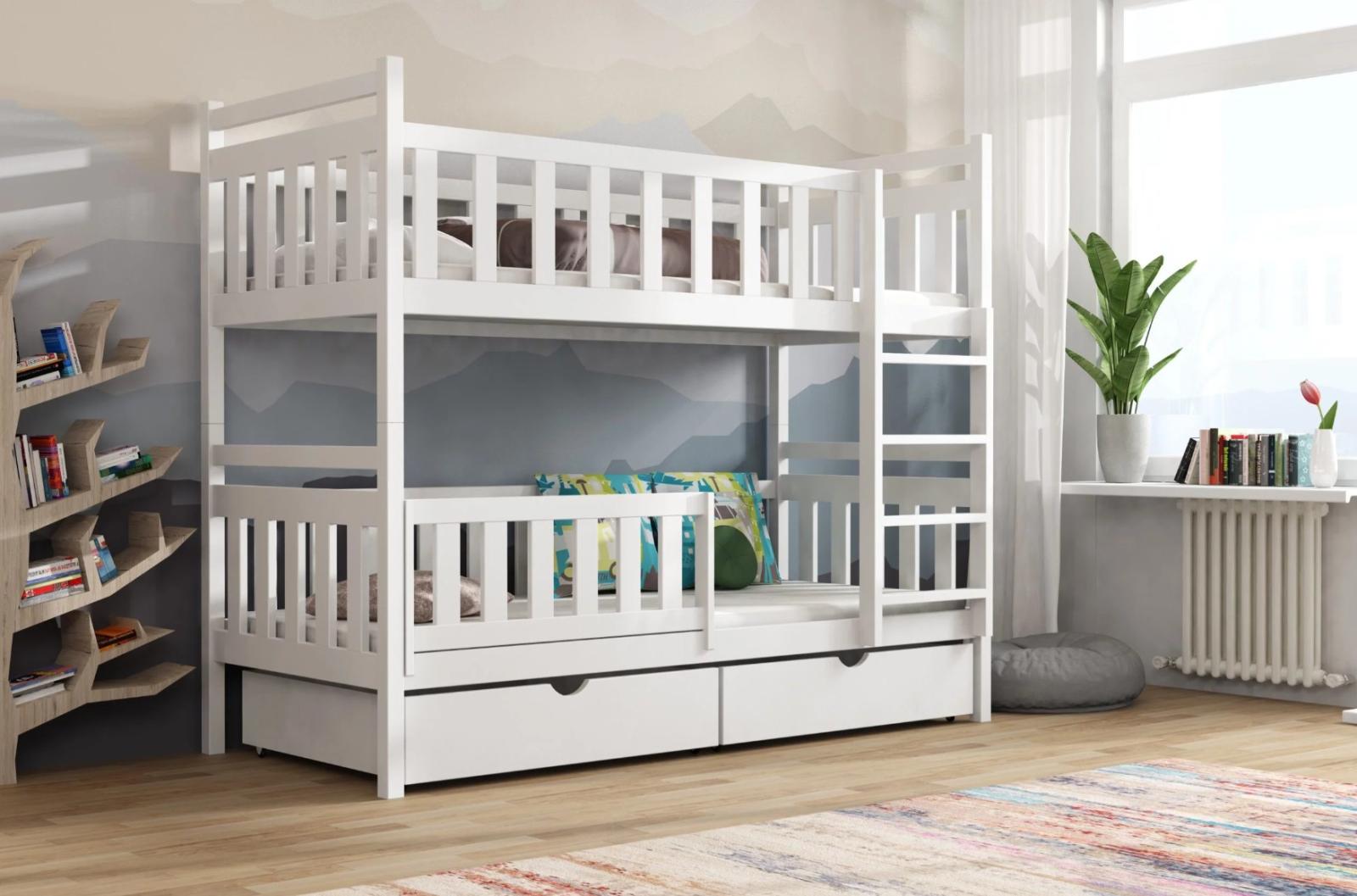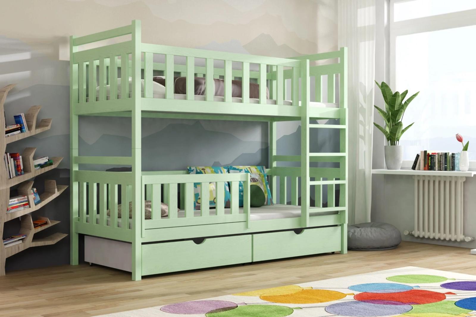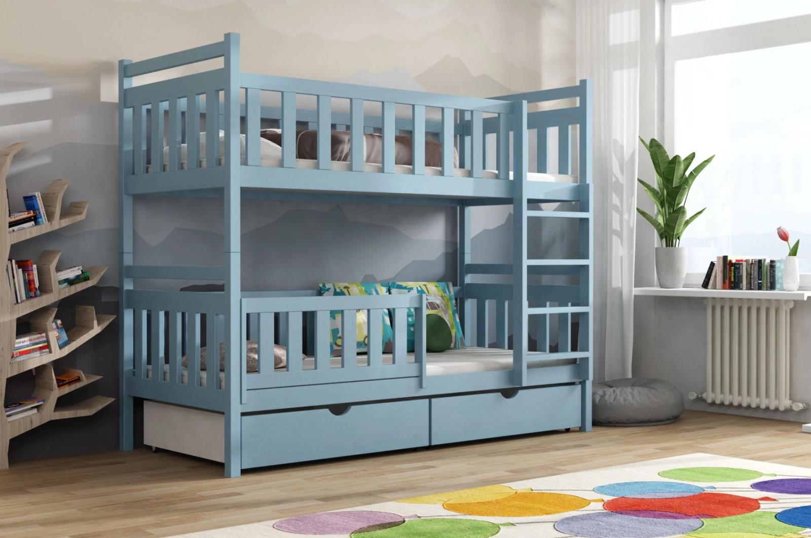Dětská patrová postel z masivu borovice KAREL se šuplíky - 200x90 cm
