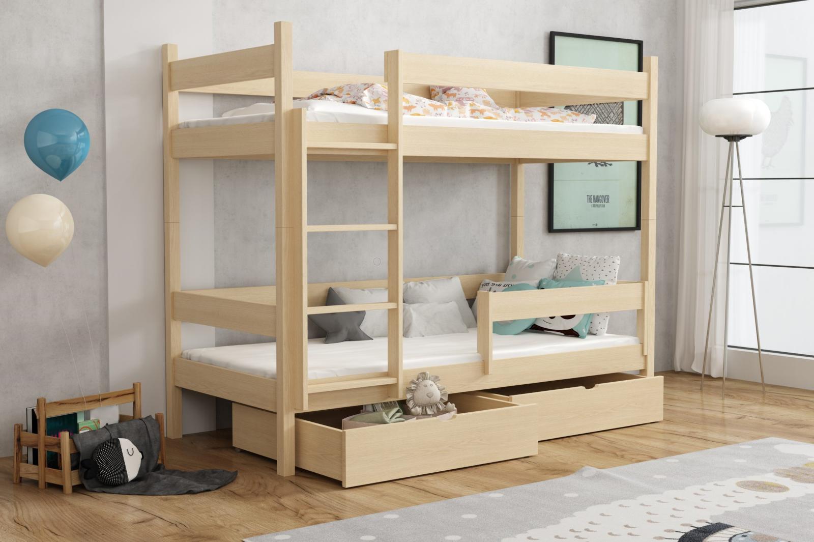 Dětská patrová postel z masivu borovice LEGEND bez šuplíků - 200x80 cm - PŘÍRODNÍ BOROVICE