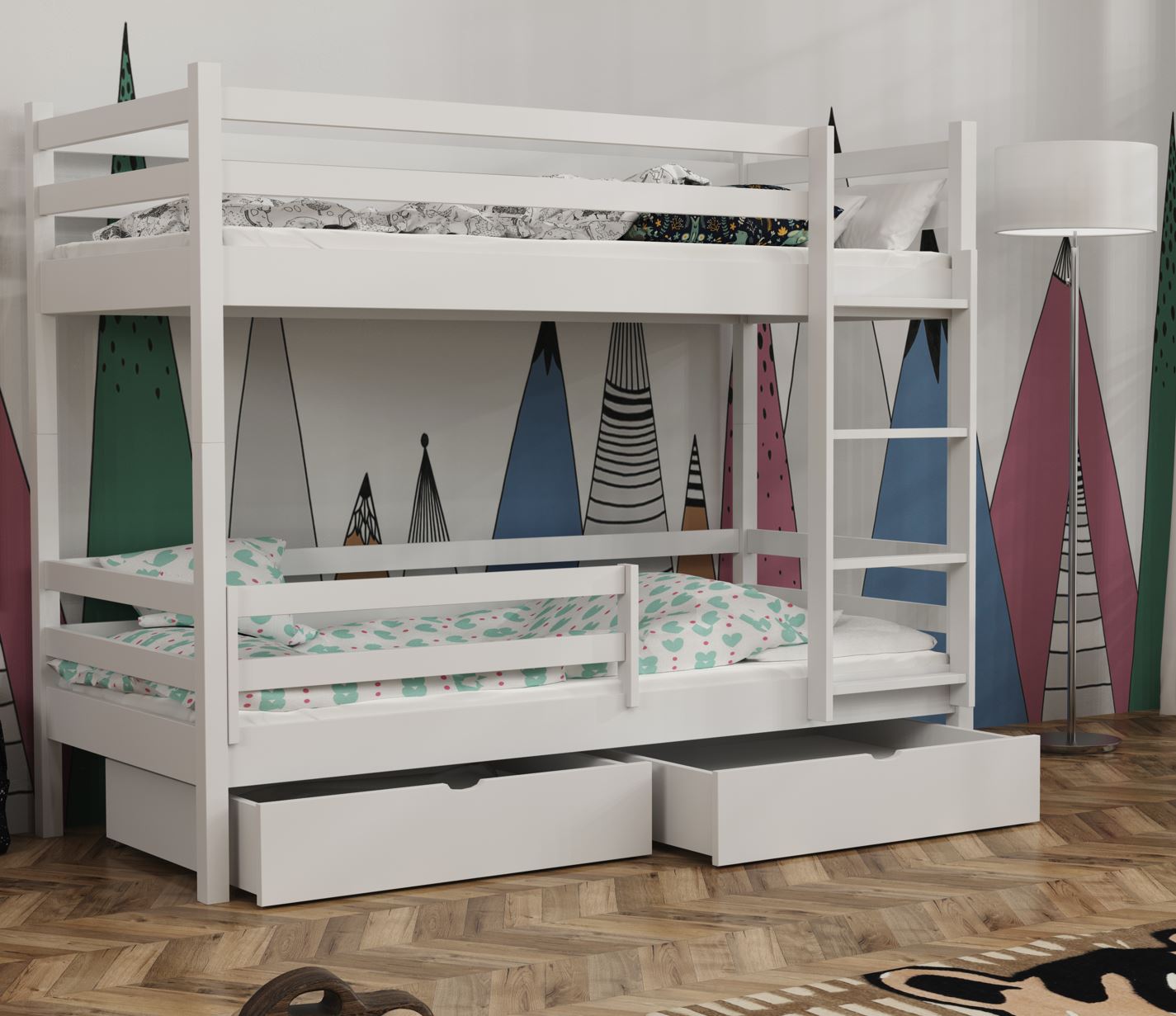 Patrová postel LEGEND PLUS je nábytek, který nejen ušetří místo v jejich pokojíčku, ale poskytne dětem spoustu zábavy a zajistí jejich bezpečnost při společné hře. Poskytněte svým dětem pohodlné místo na spaní a trávení volného času. Postel LEGENT PLUS je funkční patrová postel vyráběná s velkým důrazem na bezpečnost a pohodlí každodenního používání. Struktura masivního borovicového dřeva je odolná a stabilní. U bočnic a čel je šířka použitého materiálu 2,6 cm. Patrová postel je ošetřena ekologickým lakem na vodní bázi, který zvyšuje odolnost postele vůči poškození a poškrábání. Horní část postele je zajištěna speciální zábranou a široký žebřík s mnoha příčkami umožňuje dětem snadný výstup na horní lůžko. Postel je dodávána včetně dvou praktických šuplíků, které poskytují dostatek prostoru k uložení lůžkovin. Součástí postele jsou také kvalitní rošty. Spodní lůžko je doplněno o ochrannou bariérku s možností univerzální montáže na pravou i levou stranu. Bariérku lze také zcela odstranit, jakmile ji dítě již nepotřebuje.