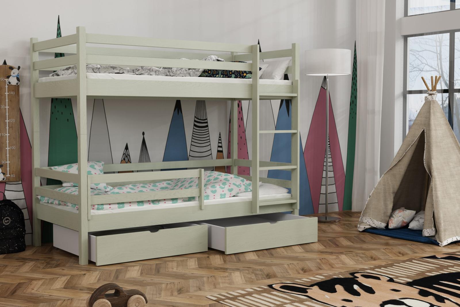 Dětská patrová postel z masivu borovice LEGEND PLUS se šuplíky - 180x80 cm - OLIVOVĚ ZELENÁ