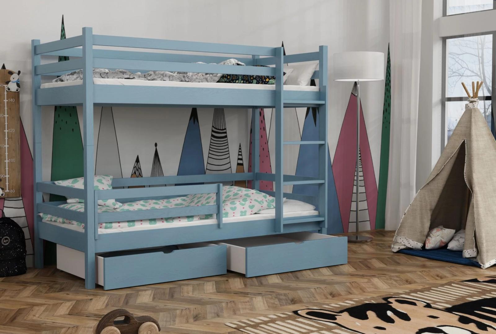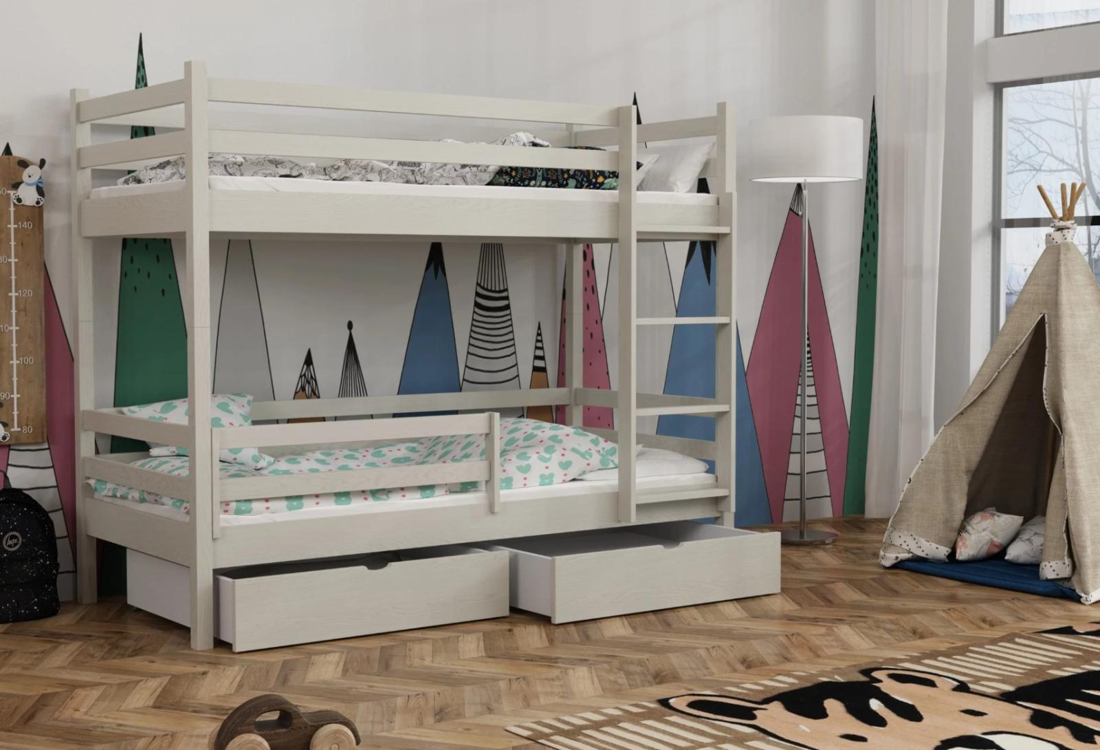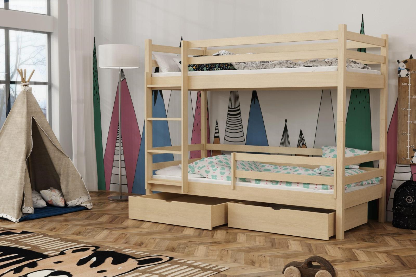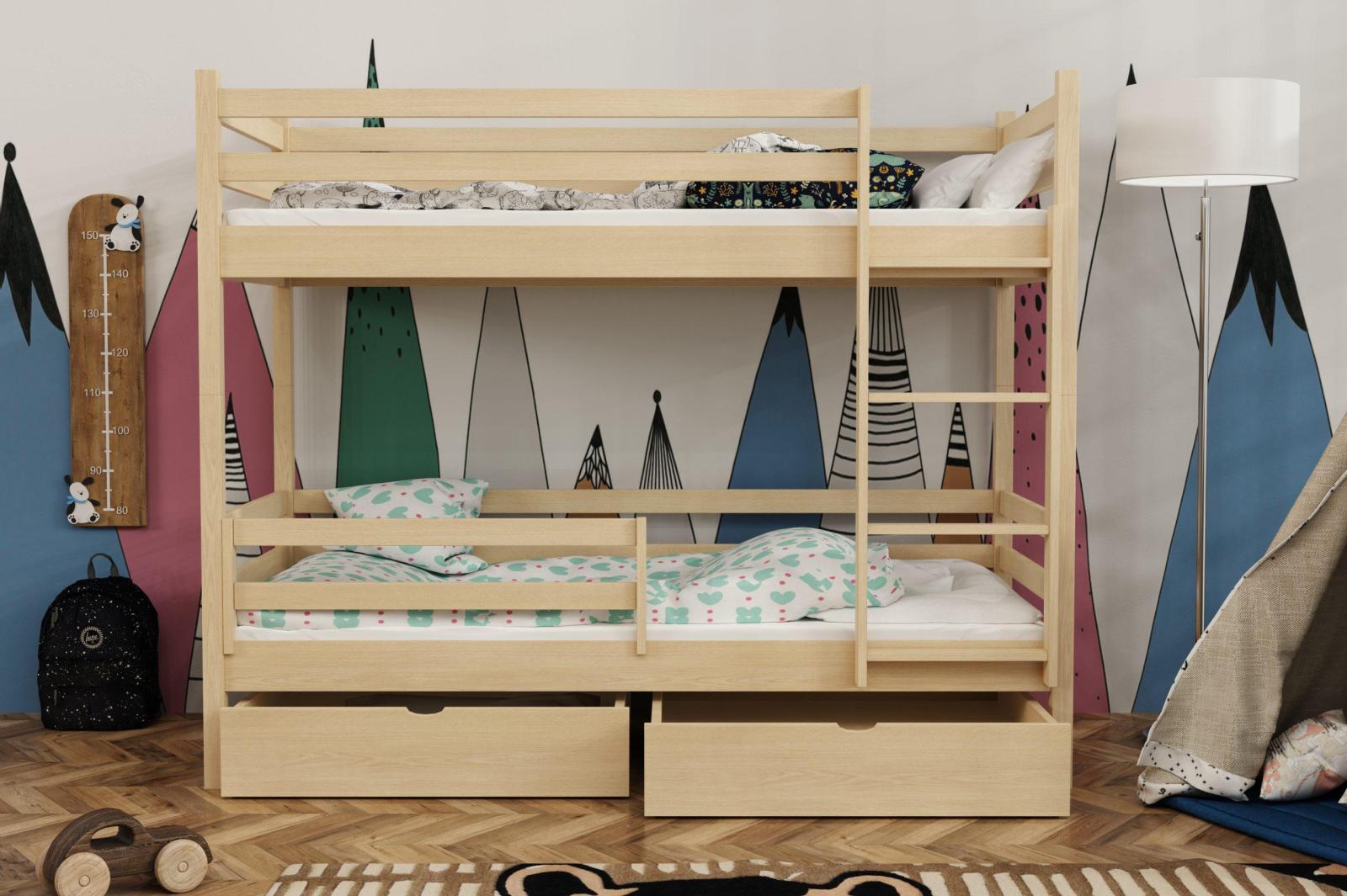 Dětská patrová postel z masivu borovice LEGEND PLUS se šuplíky - 200x90 cm