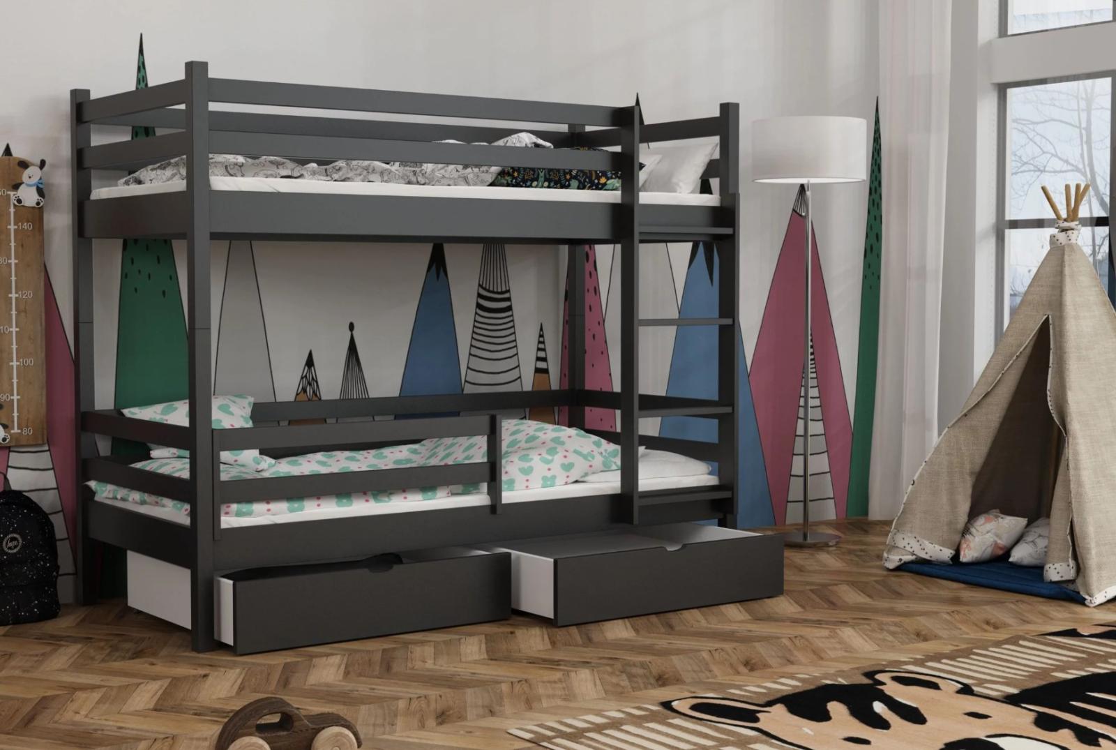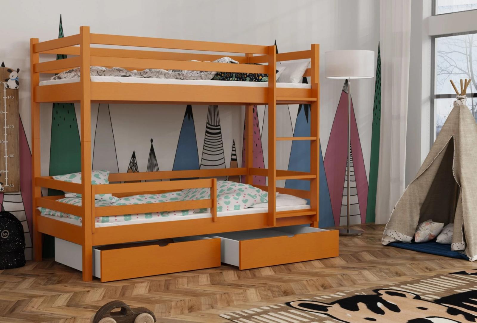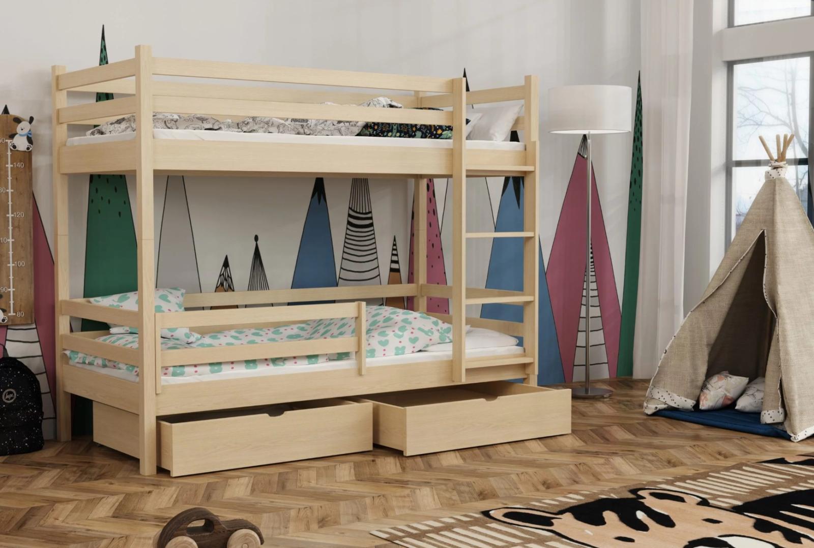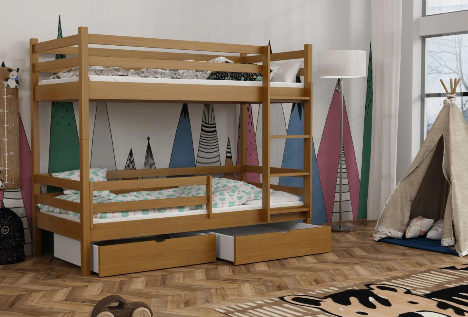Dětská patrová postel z masivu borovice LEGEND PLUS se šuplíky - 200x90 cm