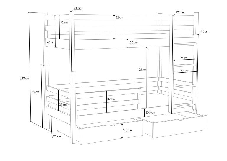 - Celková výška postele: 156 cm