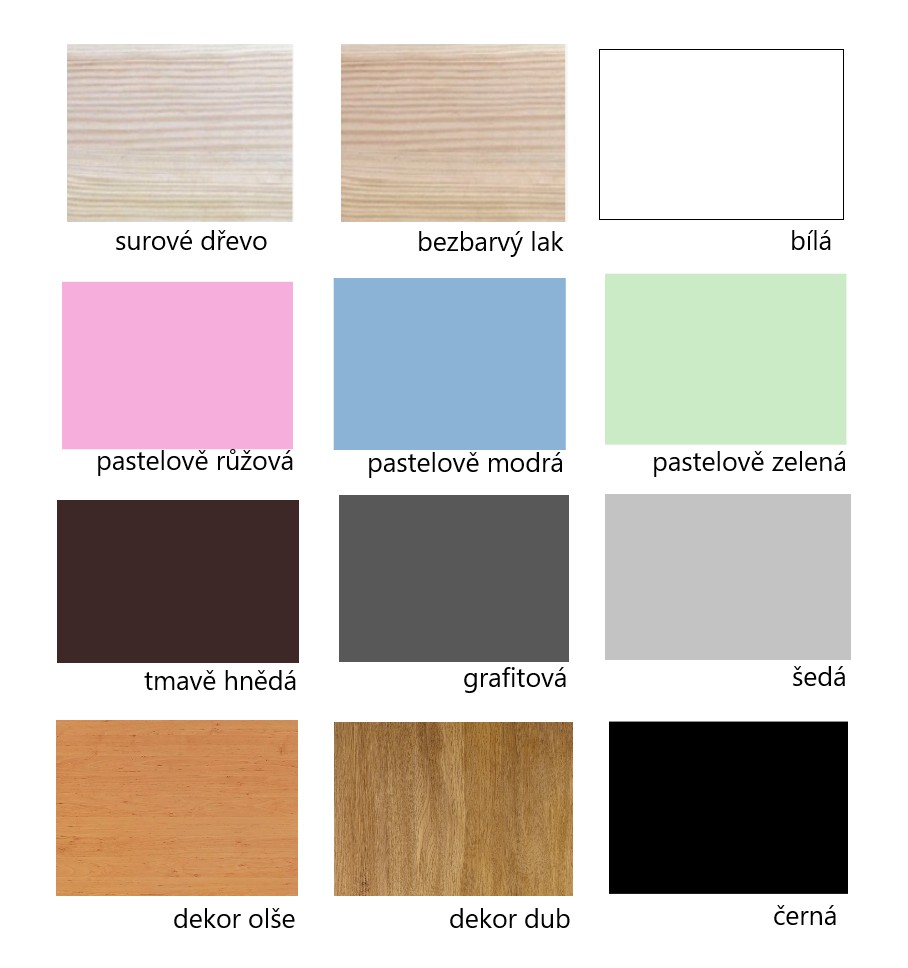 - zásuvky: borovicové dřevo, nábytková deska, sololit