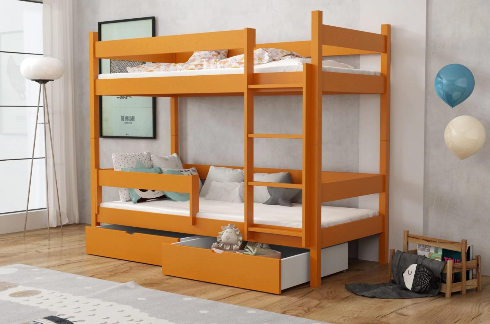 Patrová postel LEGEND je dětská postel, která osloví všechny, kteří oceňují vkusný a minimalistický vzhled. Jedná se o perfektní řešení pro sourozence, kteří sdílejí pokoj. Dětem zaručí pohodlný odpočinek a zabere poměrně malou plochu. Dvě prostorná místa na spaní a velká vzdálenost mezi rámy dávají uživatelům pocit vlastního prostoru. Patrová postel LEGEND je vybavena širokým žebříkem a ochrannou zábranou na horním lůžku, která účinně chrání před nebezpečím pádu. Patrová postel je vyrobena z masivního borovicového dřeva, které je velmi pevné a kvalitní. U bočnic a čel je šířka použitého materiálu 2,6 cm. Postel nabízíme v několika barevných variantách, případně bez povrchových úprav. Surové dřevo nabízí přirozený vzhled. Postel je ekologická, odolná a lze ji snadno přizpůsobit - její vzhled můžete upravit mořením, lakováním nebo malováním dle vlastního uvážení. Barevné varianty jsou ošetřeny ekologickým lakem bez zápachu, který zvyšuje odolnost postele proti poškrábání. Postel je dodávána včetně dvou praktických šuplíků, které poskytují dostatek prostoru k uložení lůžkovin. Součástí postele jsou také kvalitní rošty. Spodní lůžko je doplněno o ochrannou bariérku s možností univerzální montáže na pravou i levou stranu. Bariérku lze také zcela odstranit, jakmile ji dítě již nepotřebuje.