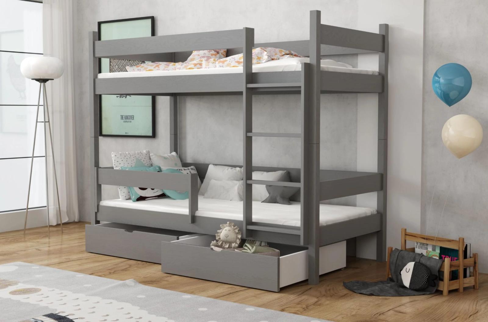 Dětská patrová postel z masivu borovice LEGEND se šuplíky - 200x90 cm