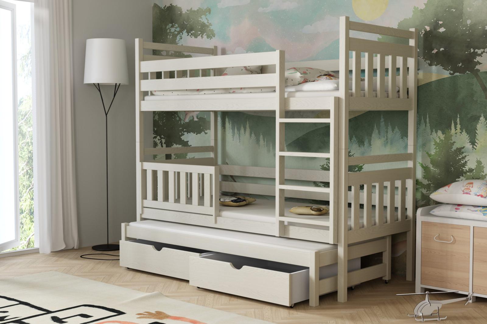 Dětská patrová postel z masivu borovice PETR s přistýlkou a šuplíky - 180x80 cm - KAŠMÍROVÁ