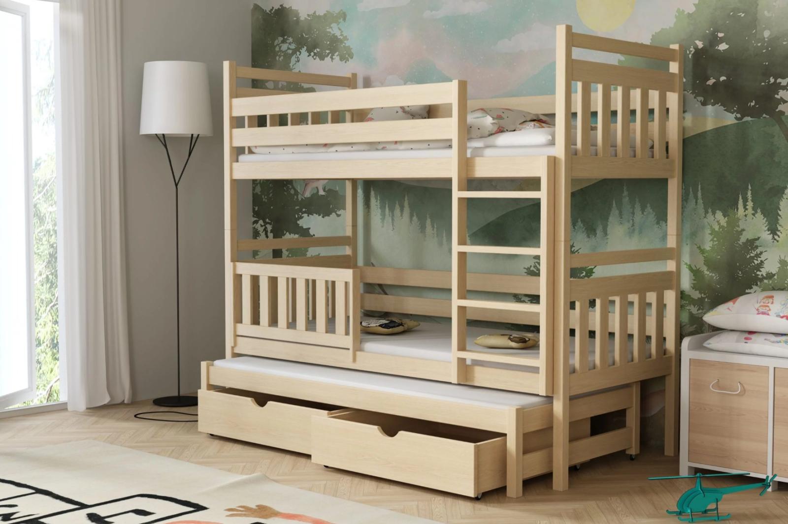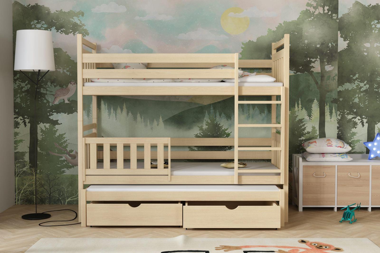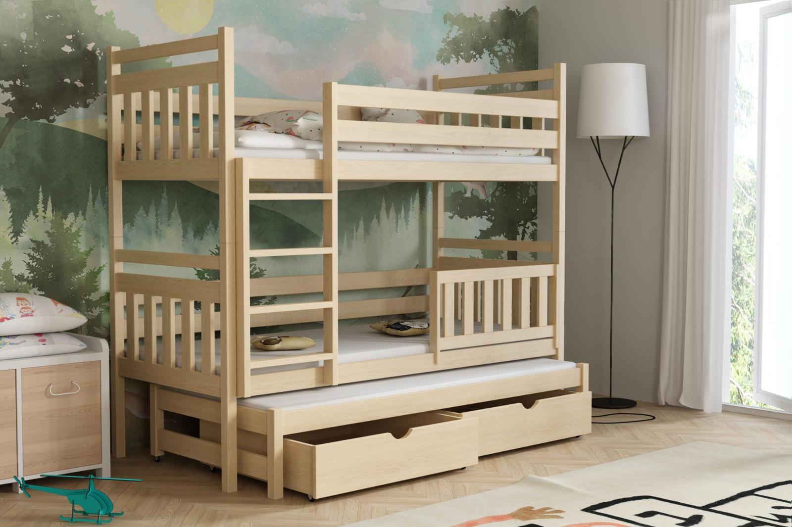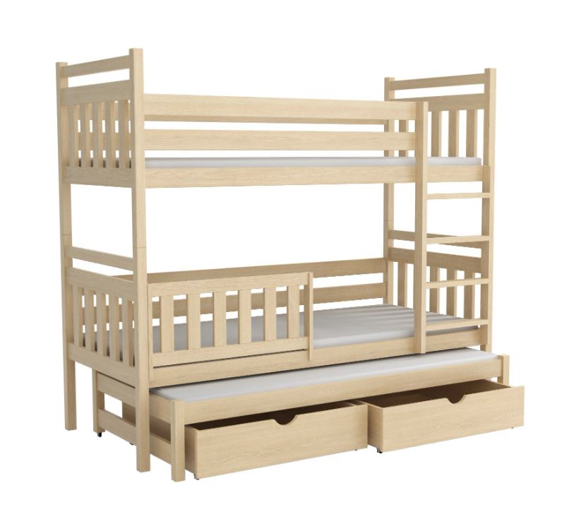 Dětská patrová postel z masivu borovice PETR s přistýlkou a šuplíky - 200x90 cm