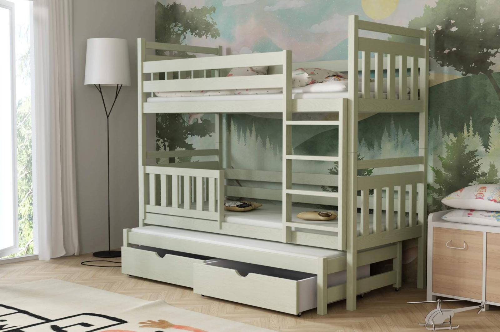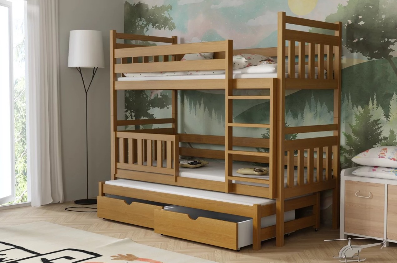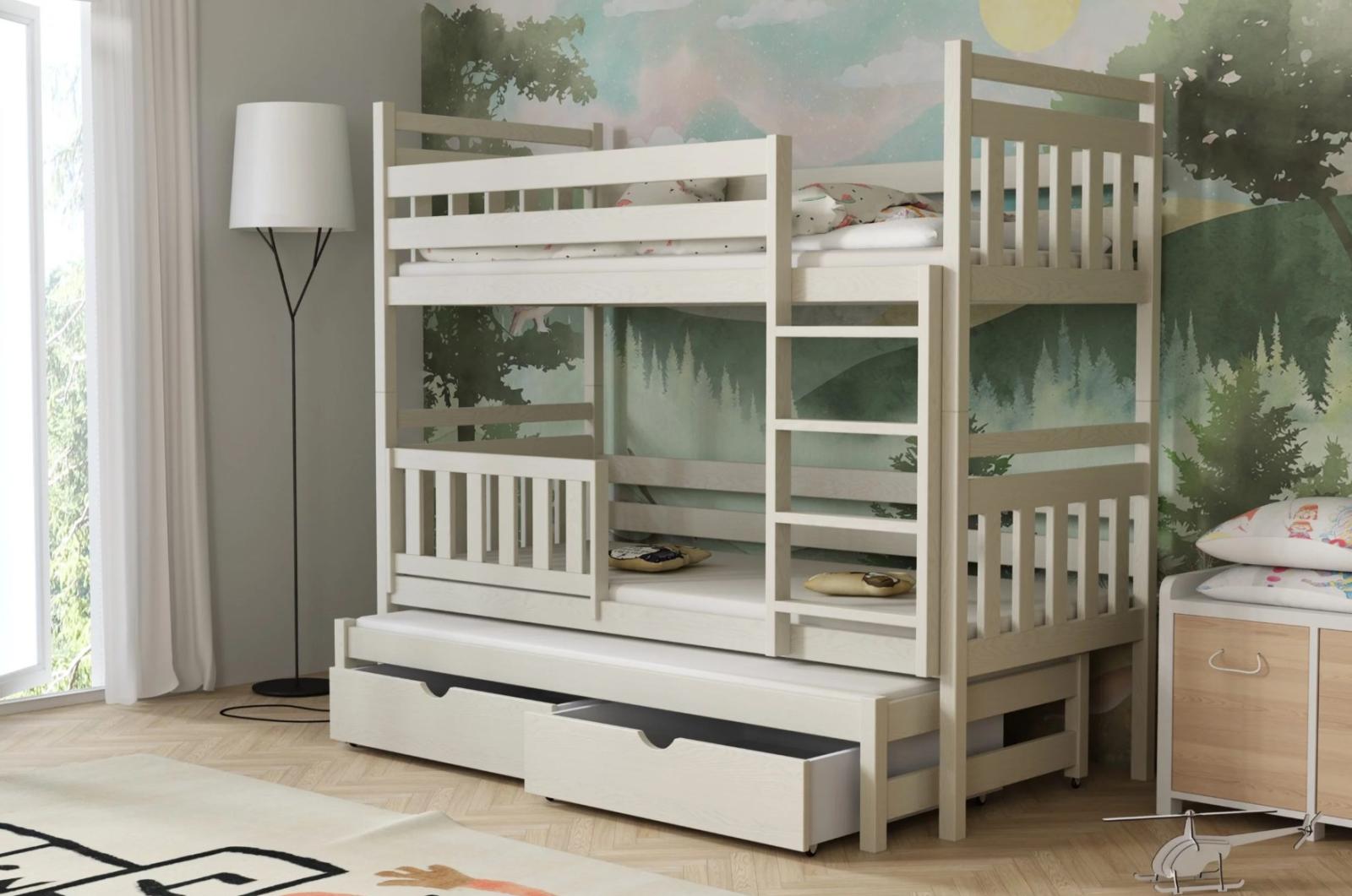 Dětská patrová postel z masivu borovice PETR s přistýlkou a šuplíky - 200x90 cm