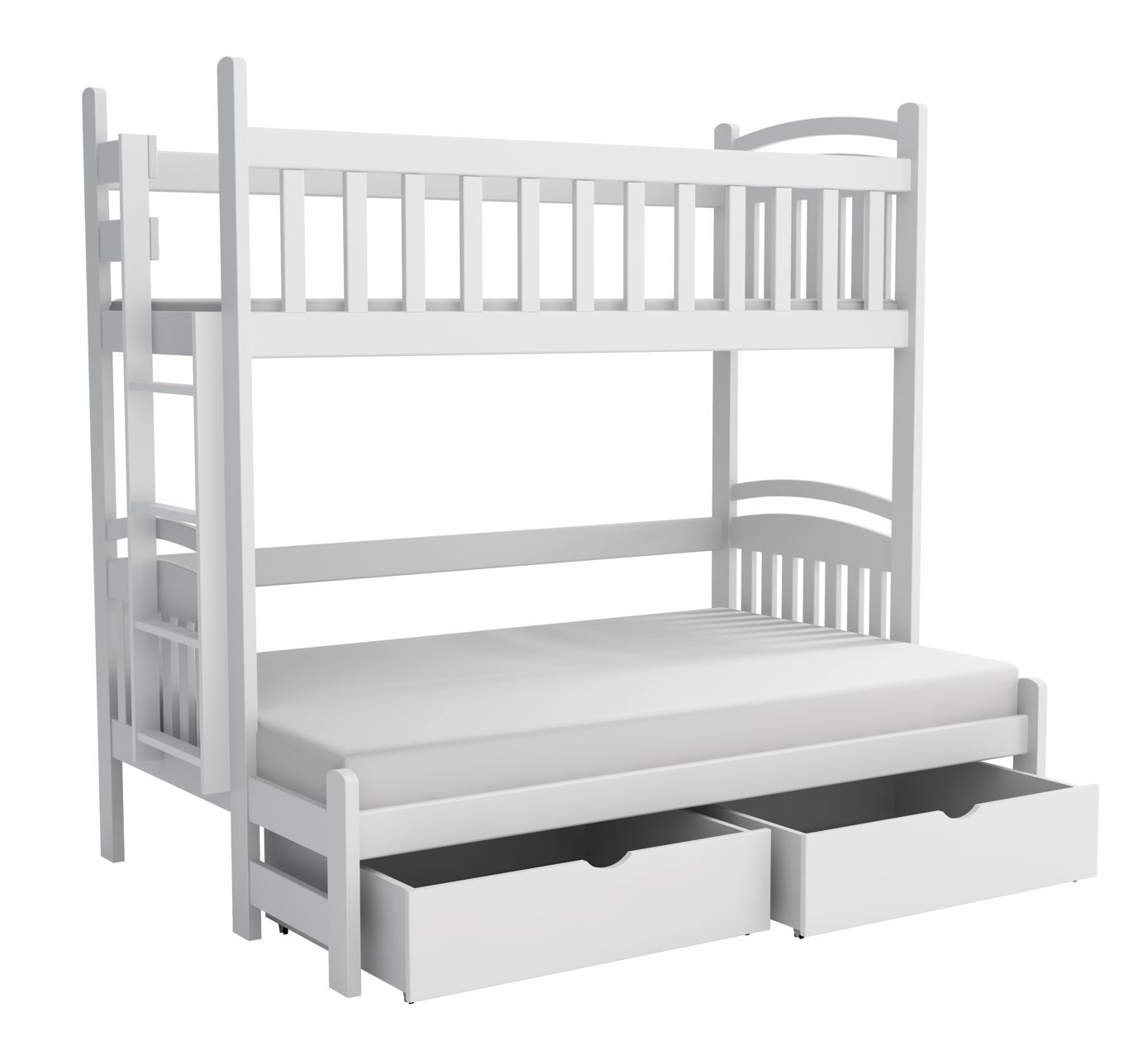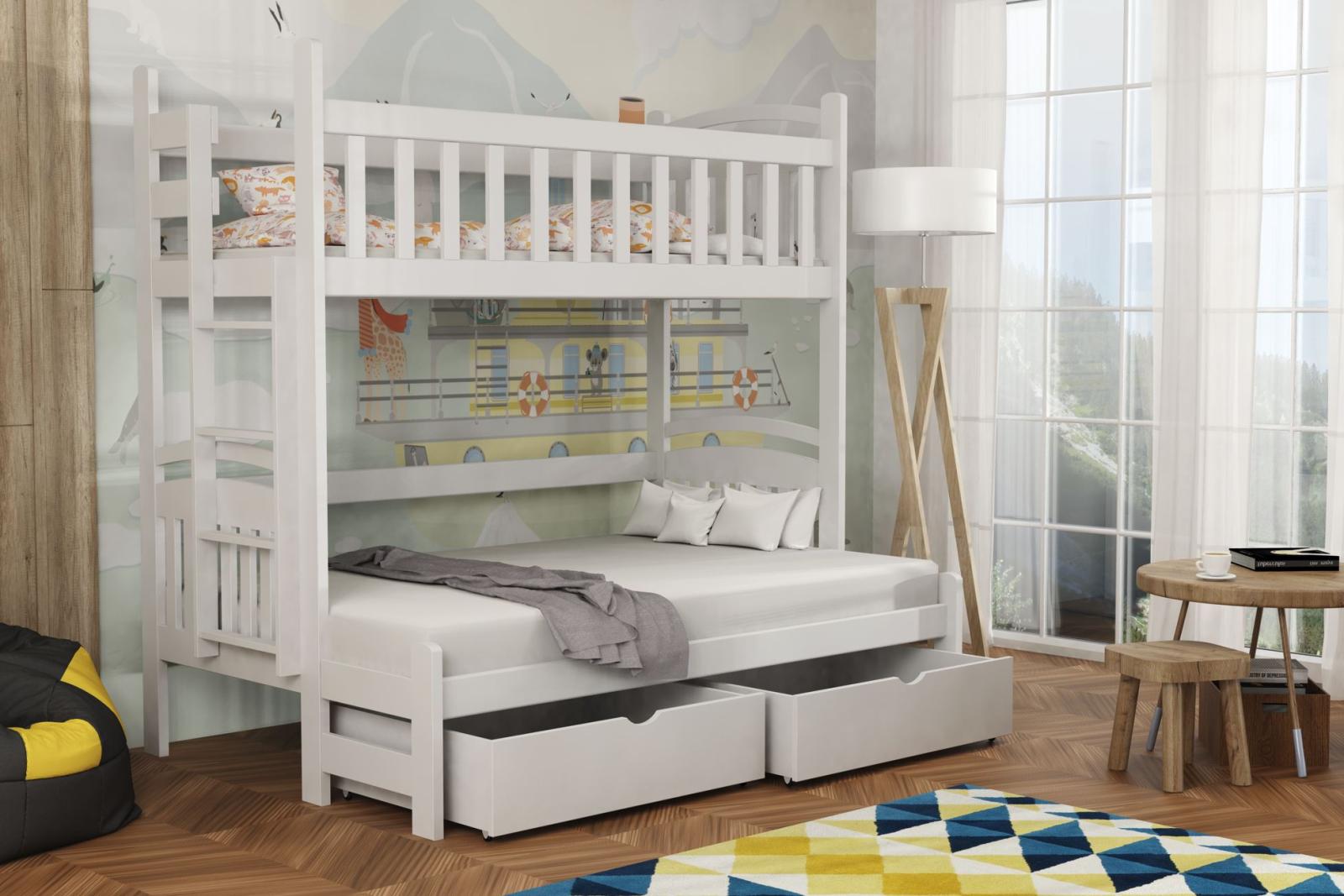 Dětská patrová postel z masivu borovice s rozšířeným spodním lůžkem LUKÁŠ se šuplíky - 200x90/140 cm - BÍLÁ