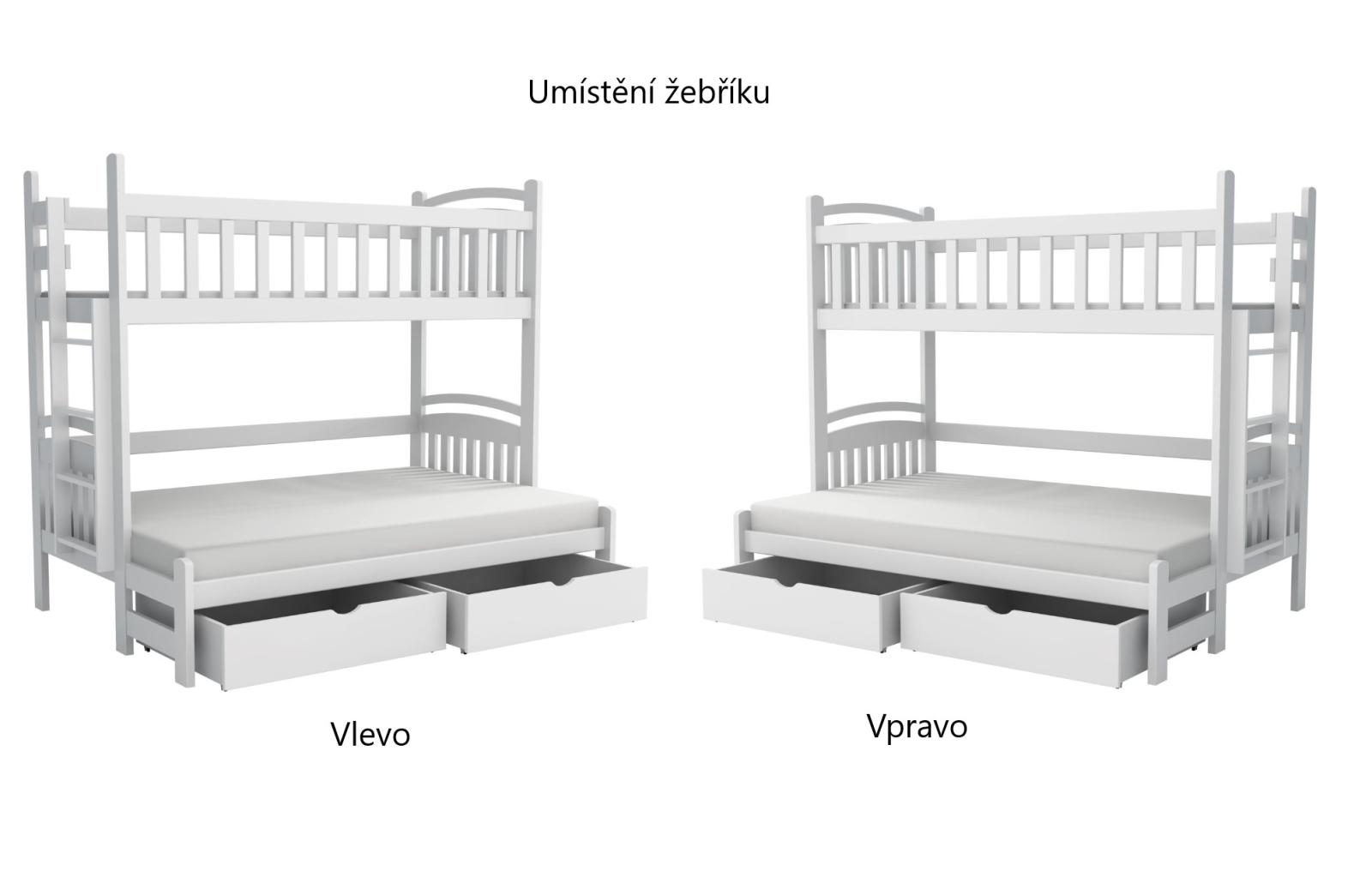 Dětská patrová postel z masivu borovice s rozšířeným spodním lůžkem LUKÁŠ se šuplíky 200x90/140 cm - BÍLÁ, žebřík vpravo