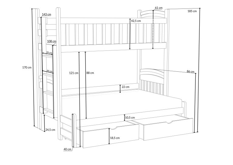- Celková výška postele: 170 cm
