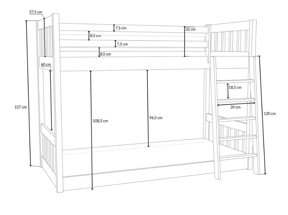 Dětská patrová postel ŠIMON je unikátní kombinací patrové a Montessori postele. Díky nízké konstrukci spodního lůžka a volnému vstupu můžeme postel zařadit mezi Montessori nábytek. Princip Montessori klade důraz na volnost dítěte, což tato postel nabízí. Díky tomu je postel vhodná i pro menší děti. Horní lůžko je pak vhodné pro staršího sourozence nebo kamaráda. Minimalistický, skandinávský styl postele Šimon osloví všechny lidi, kteří oceňují modernost a funkčnost. Postel je vyrobena z vysoce kvalitního borovicového dřeva, které je ošetřeno ekologickým a zdravotně neutrálním lakem na vodní bázi, který je bez zápachu a díky němuž je postel chráněna proti poškození a poškrábání. U bočnic a čel je šířka použitého materiálu 2,6 cm. Pevné zábrany horního lůžka zabraňují pádu z postele při spánku a široký stabilní žebřík umožňuje dostat se do mezipatra velmi snadno a pohodlně. Součástí postele jsou také kvalitní rošty.