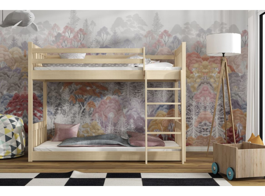 Dětská patrová postel z masivu borovice ŠIMON s Montessori lůžkem - 200x90 cm - PŘÍRODNÍ BOROVICE
