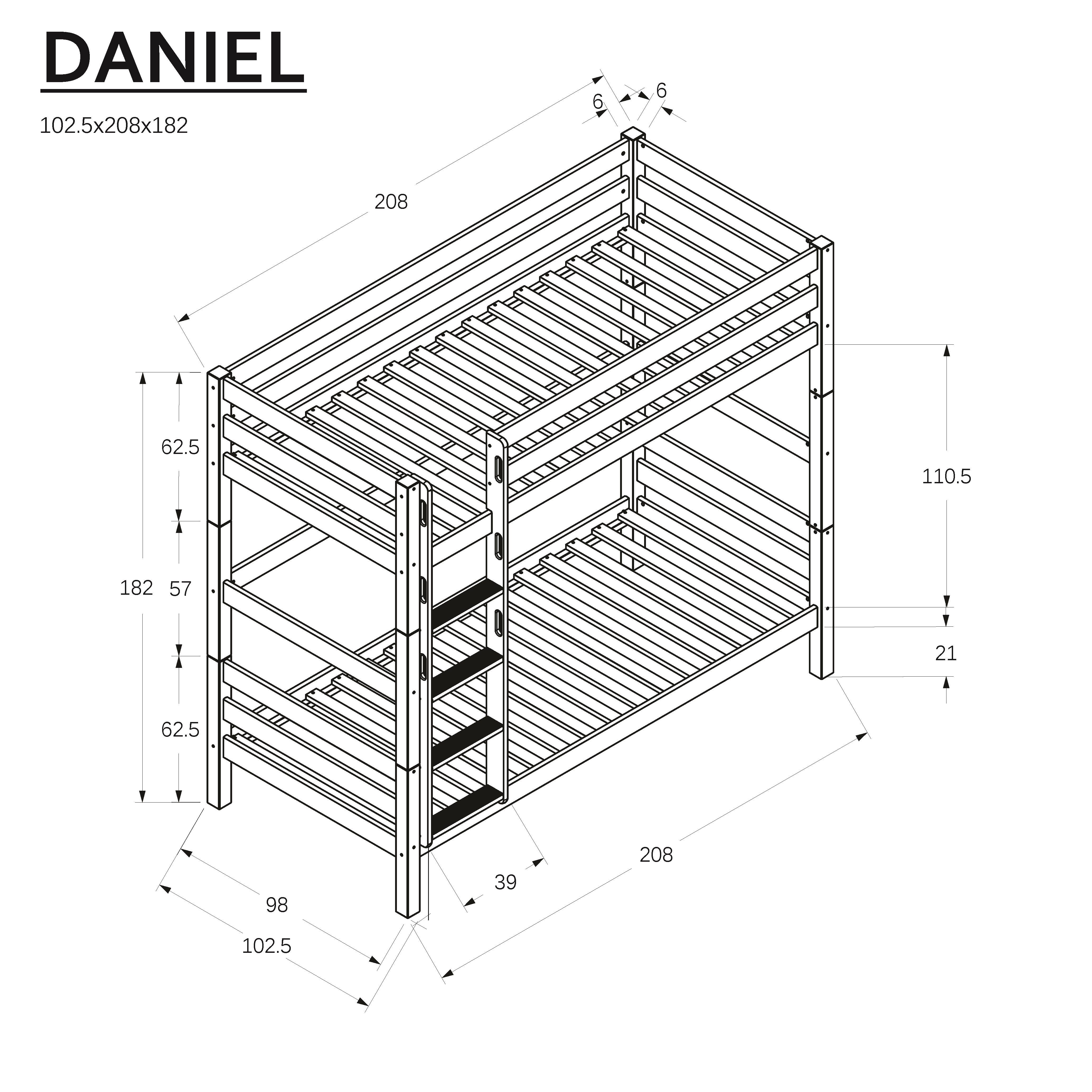 - Rozměry postele [DxŠxV]: 208x102,5x182 cm
