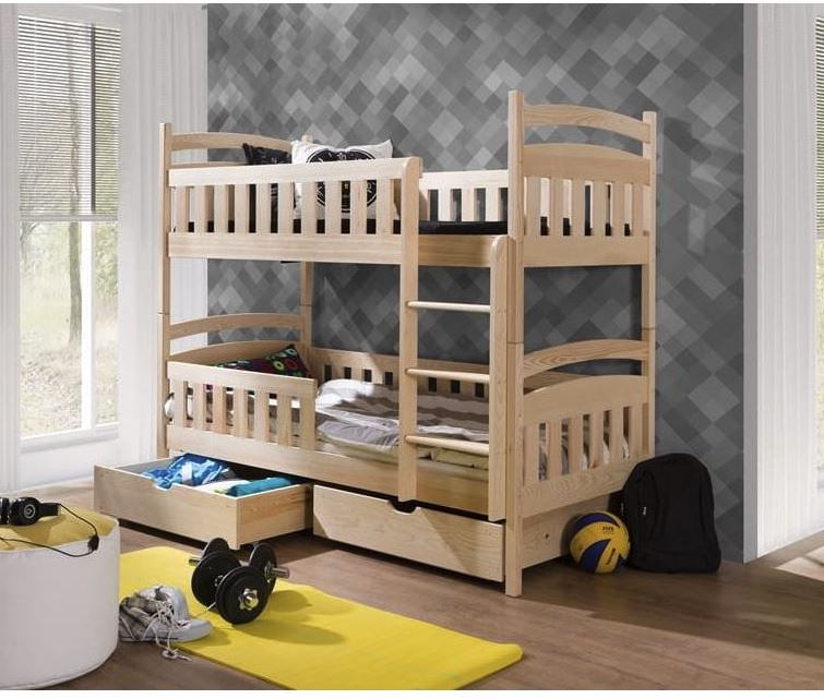 Dětská patrová postel z masivu DOMINIK II se šuplíky - 200x90 cm - přírodní borovice