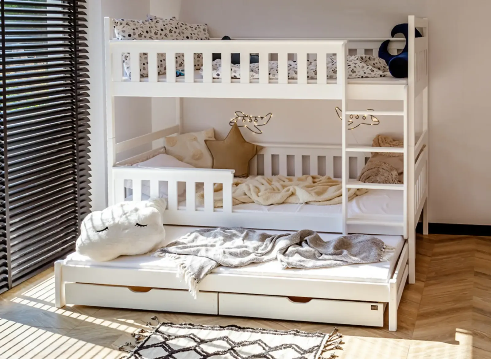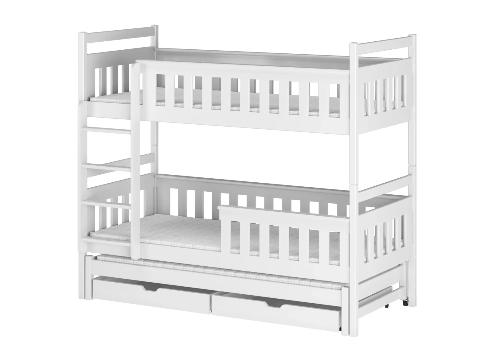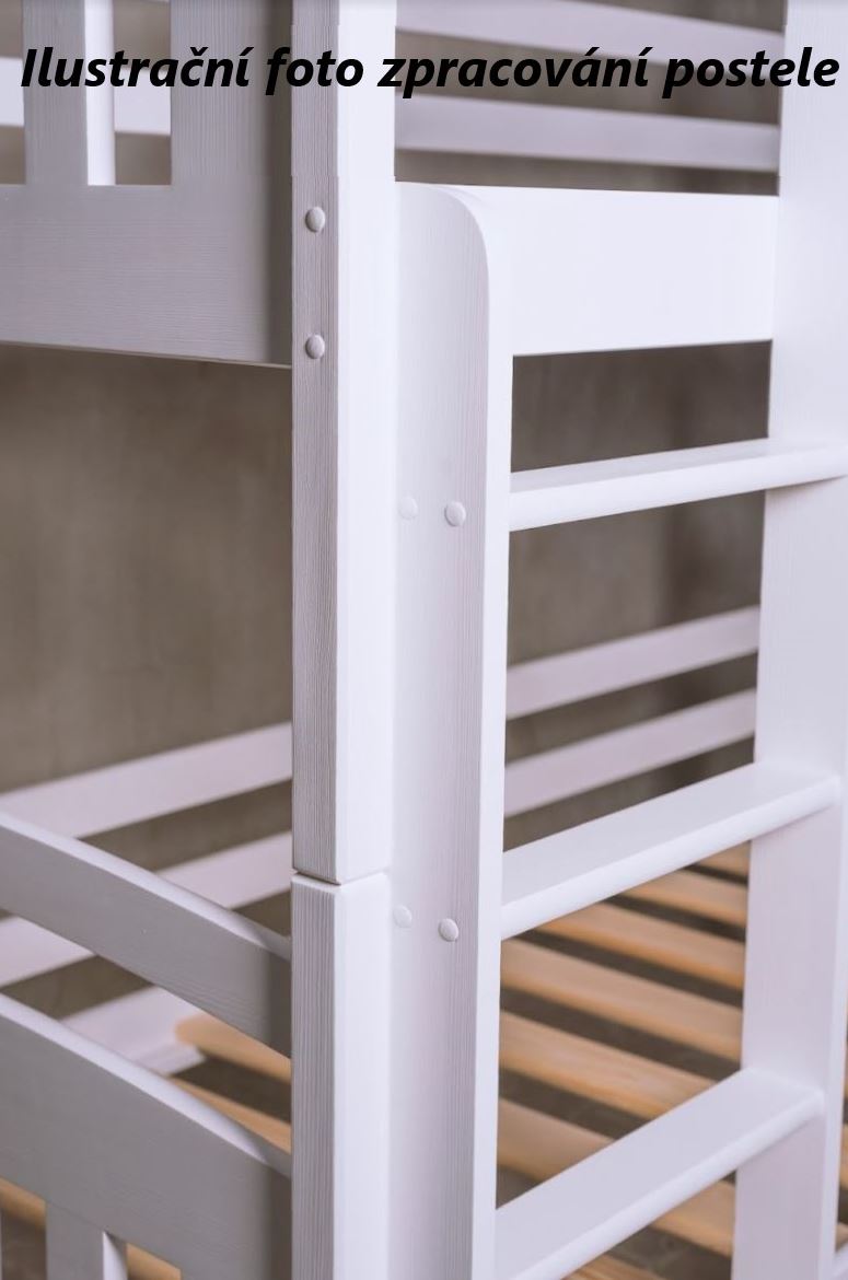Dětská patrová postel z masivu KRISTIÁN s přistýlkou a šuplíky - 200x90 cm - BÍLÁ