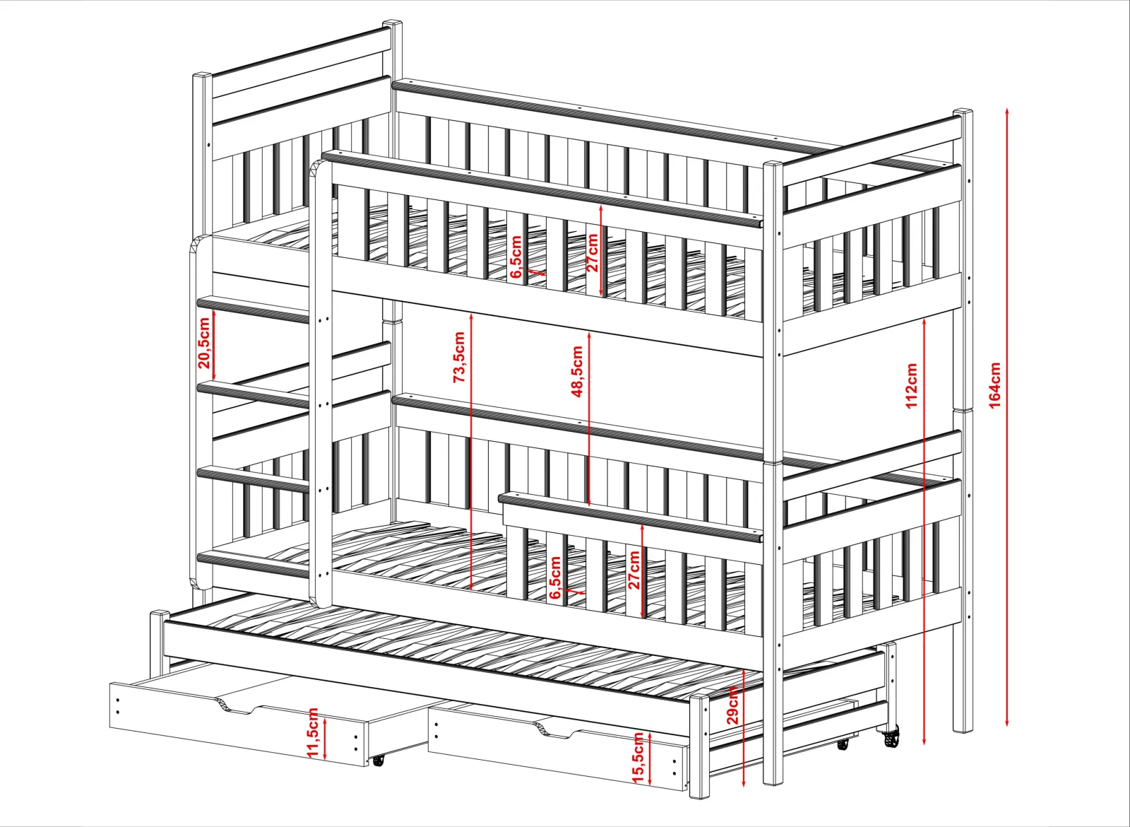 - Celková výška postele: 164 cm