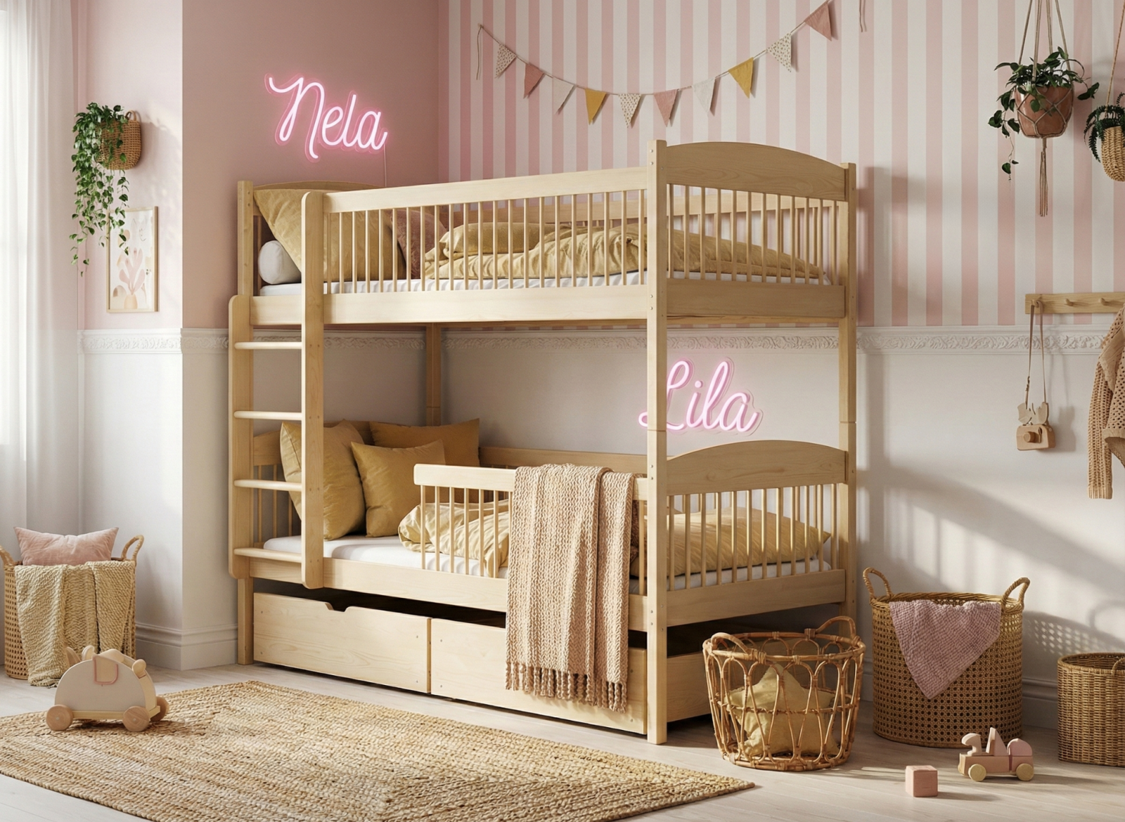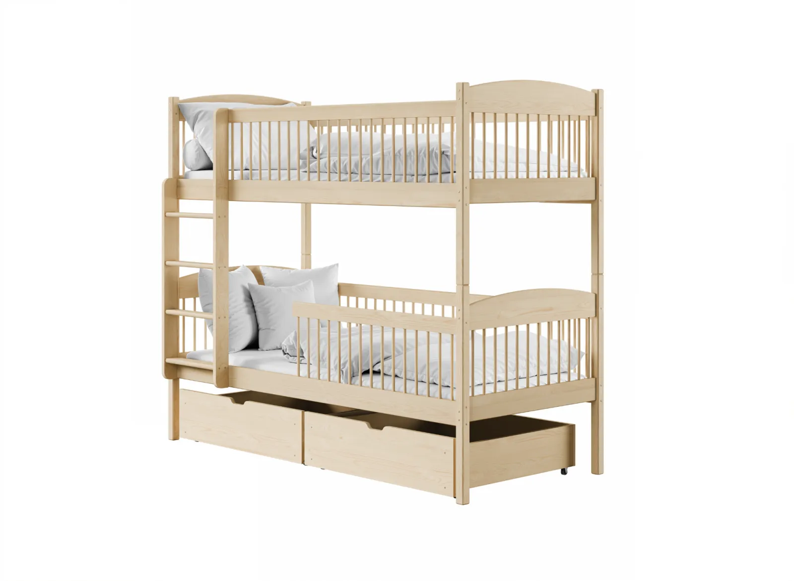 Dětská patrová postel z masivu se šuplíky ILONA - 200x90 cm - PŘÍRODNÍ BOROVICE