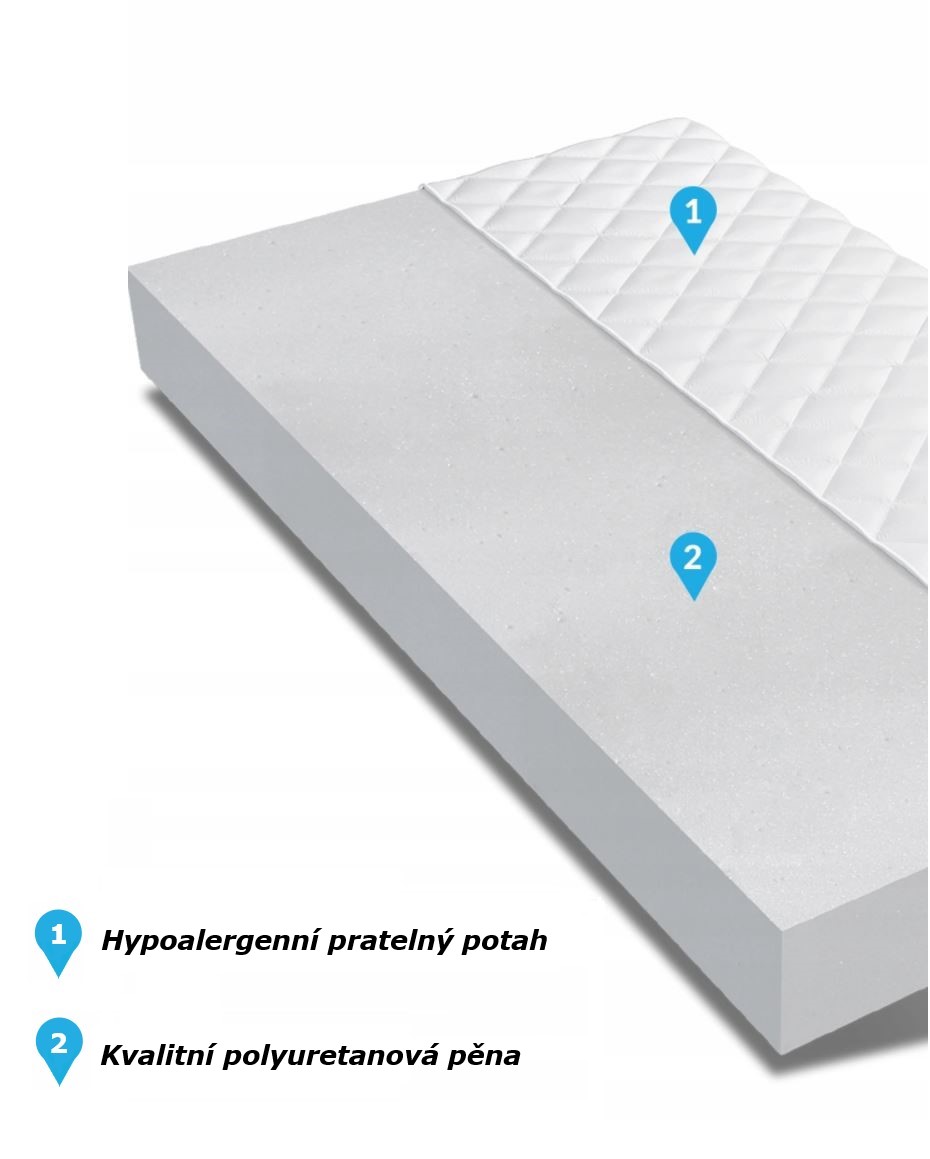 Potah: hypoalergenní, snímatelný (na zip), lze prát v pračce na 30 °C