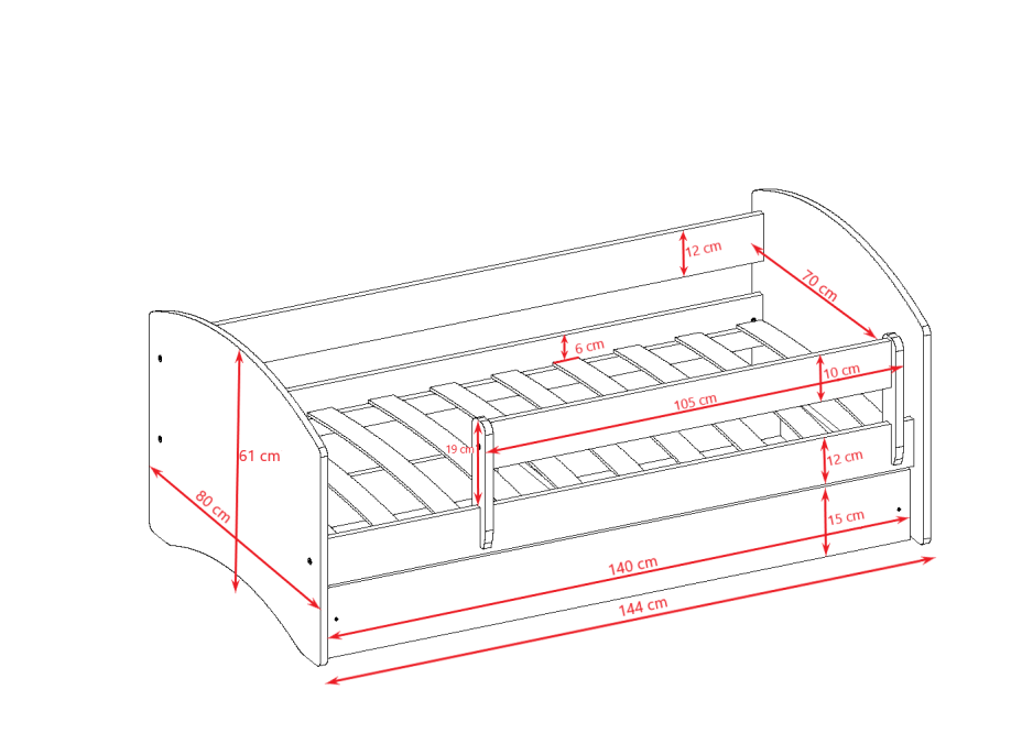 Dětská postel je vyrobena z vysoce kvalitních MDF desek o tloušťce 1,8 cm Okraje postýlky jsou zaobleny a nenaleznete na ní ostré hrany, což zajišťuje bezpečnost vašeho dítěte před úrazem.