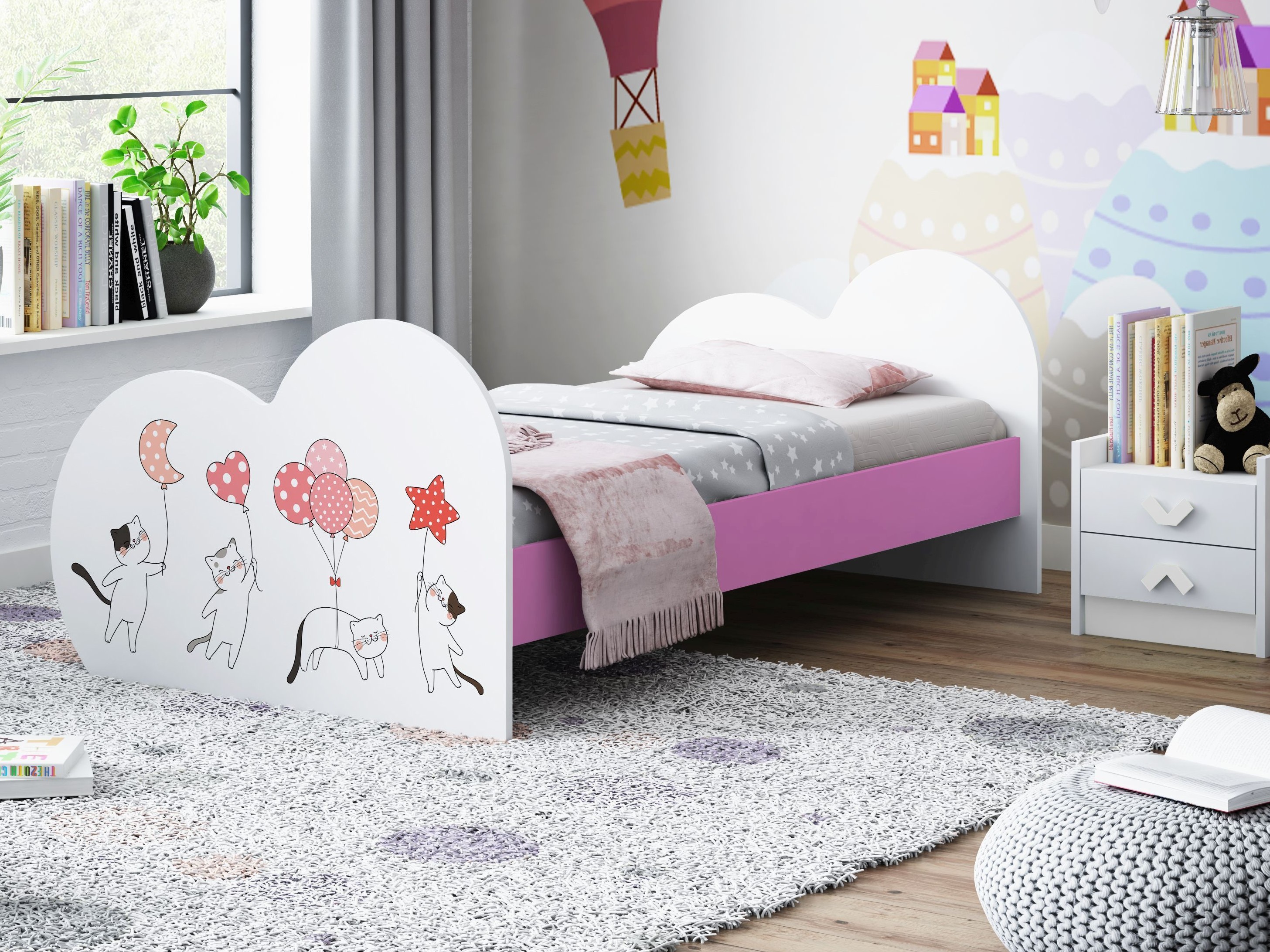 Dětská postel ZAMILOVANÉ KOČIČKY 190x90 cm (11 barev) + matrace ZDARMA