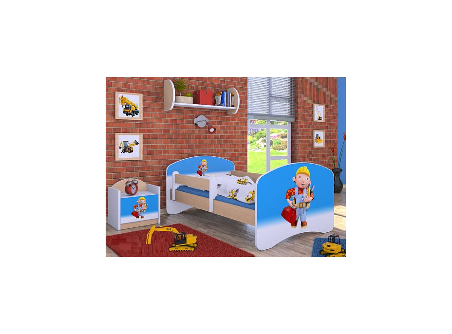 Dětská postel bez šuplíku 160x80cm BOŘEK STAVITEL - světlá hruška