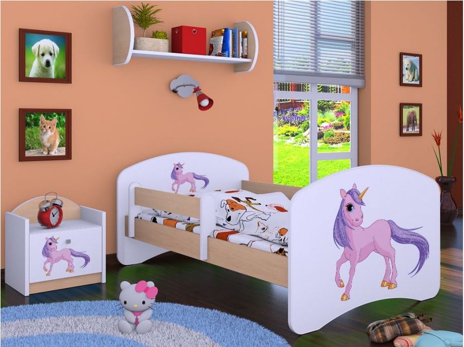 Dětská postel bez šuplíku 180x90cm JEDNOROŽEC - světlá hruška