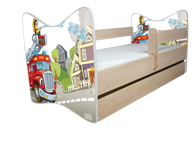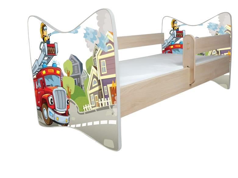 Dětská postel DELUXE - HASIČSKÉ AUTO 138x64 cm - dub sonoma