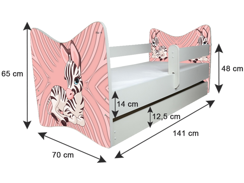 Tuto postel z kvalitního materiálu s nadčasovým designem si zamiluje každé dítě. Dětská postel je vyrobena z dřevotřískových desek o tloušťce 18 mm. Motiv na posteli je vyhotoven z ekologických a nezávadných barev, které neohrožují zdraví dítěte. Potisk má krásné syté barvy, které jsou zajištěny speciálním laminátem s ochranou proti oděru a vyblednutí. Hrany postele jsou zaobleny a zaručují tak bezpečnost. Postel je snadno omyvatelná. Postel dodáváme bez šuplíku.