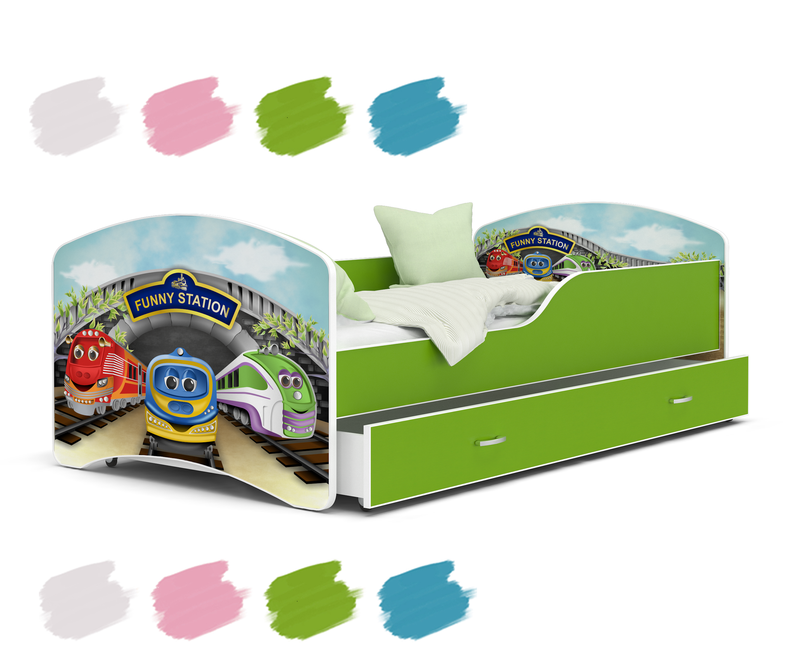 Dětská postel se šuplíkem je dostupná v mnoha barevných variantách a vzorech. Vy tak budete mít možnost sladit postel skvěle s dětským pokojem a přivést interiér k dokonalosti. Vaše děti si tuto postel zamilují!