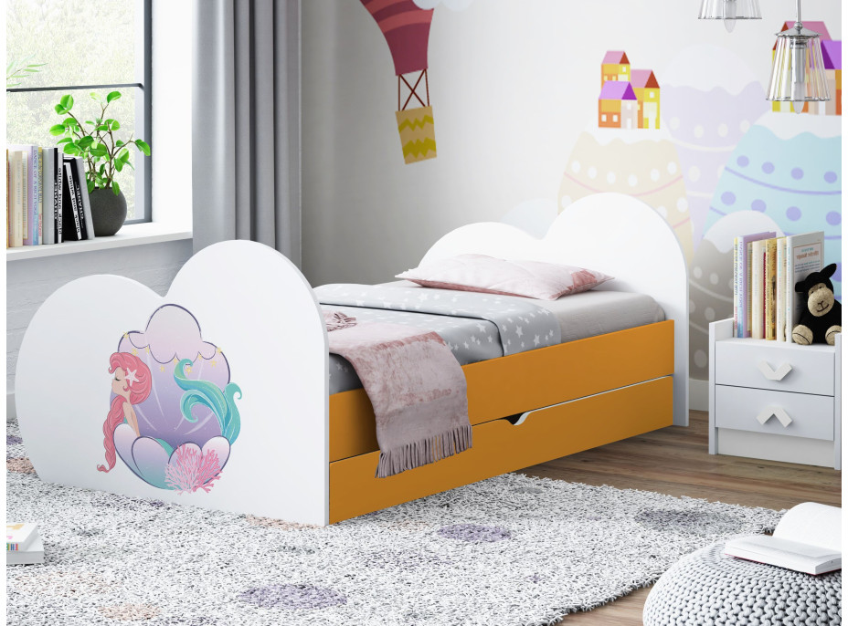 Dětská postel MOŘSKÁ VÍLA 200x90 cm, se šuplíkem (11 barev) + matrace ZDARMA