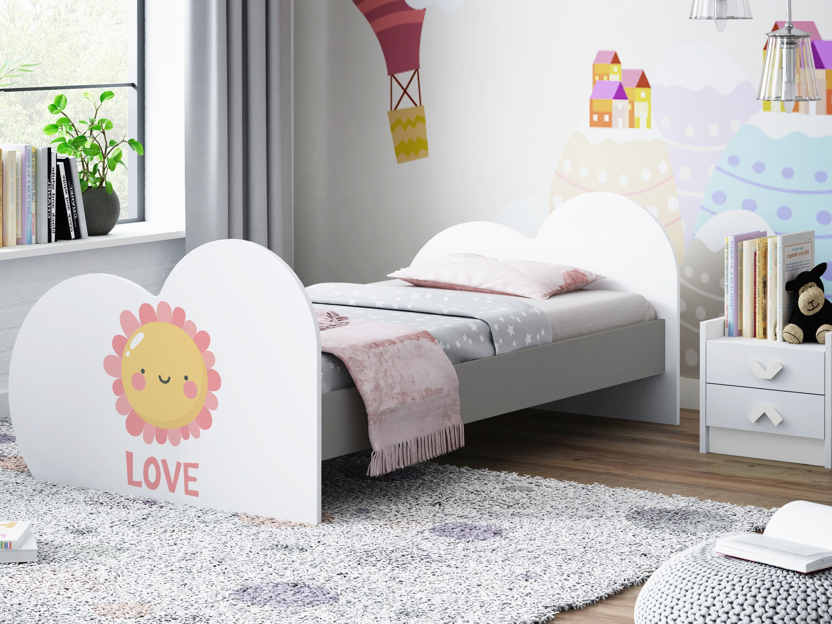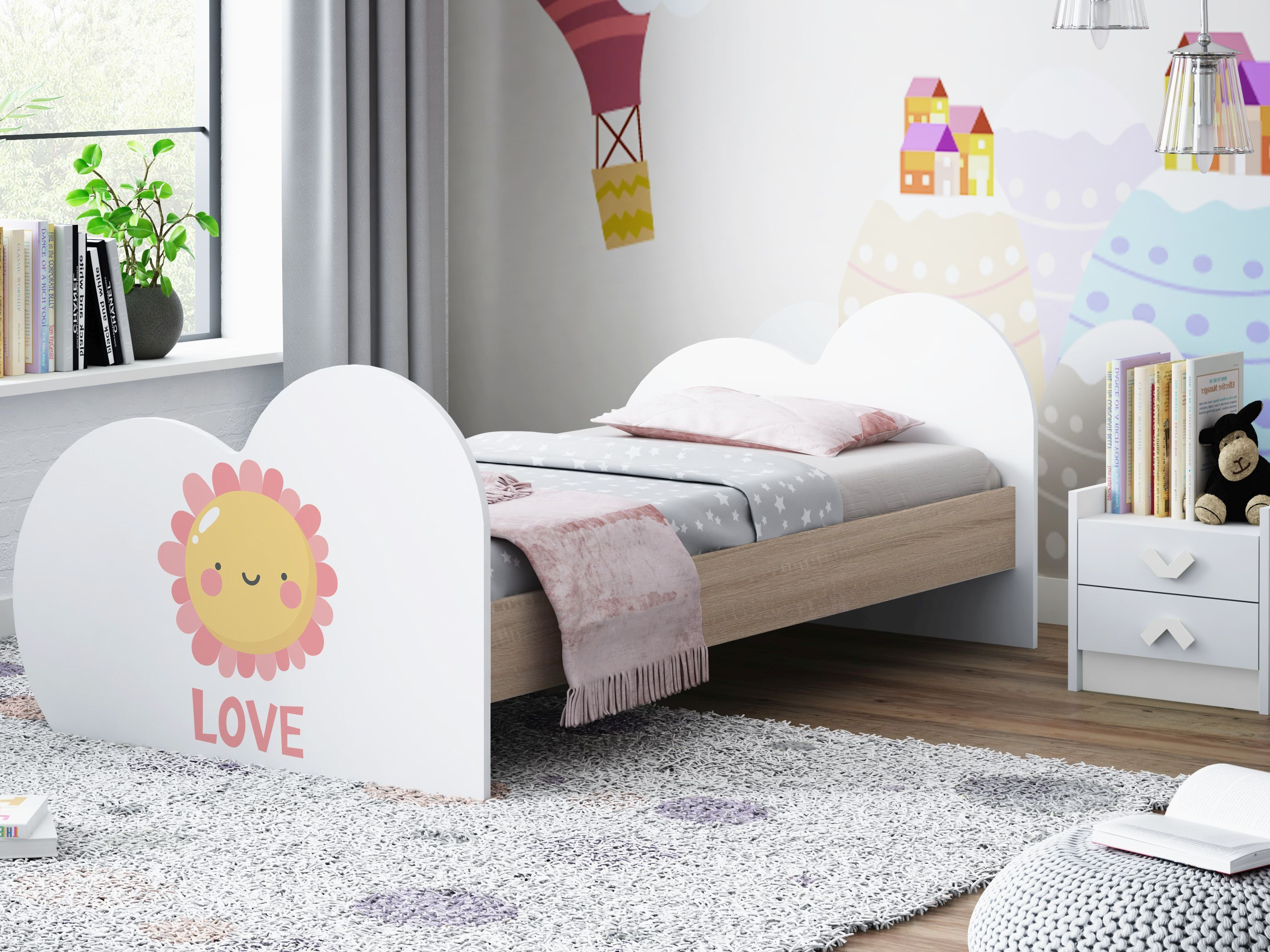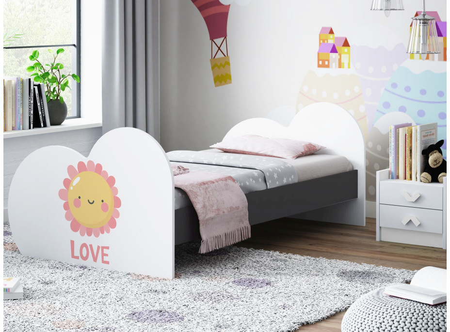 Dětská postel z kolekce LOVE vás na první pohled zaujme unikátním srdíčkovým tvarem a moderním designem, který se hodí do každého dětského pokoje. Postele jsou vhodné jak pro děvčata, tak i chlapce a díky své univerzálnosti se hodí do každého dětského pokoje, kde se stanou hlavní dominantou interiéru.