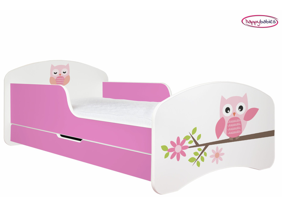 Dětská postel se šuplíkem 180x90cm RŮŽOVÁ SOVIČKA + matrace ZDARMA!