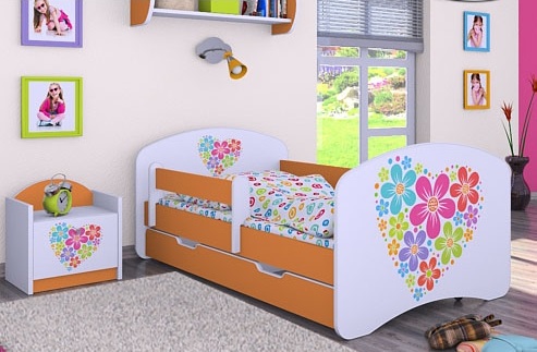 Dětská postel se šuplíkem 200x90 cm KYTIČKY V SRDÍČKU