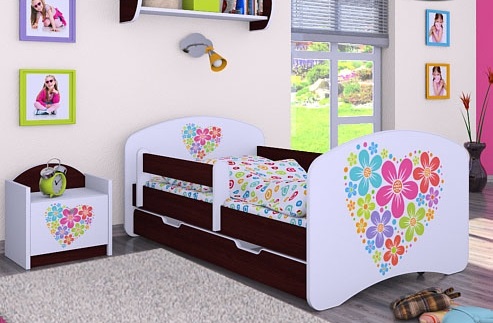 Dětská postel tvoří základ každého dětského pokojíčku. Nabízíme Vám dětskou postel z vysoce kvalitní lamino desky o síle 18 mm. Na čelech postele je krásný barevný potisk, který se Vašemu dítěti určitě zalíbí. K tištění obrázků byly použity ekologické barvy, které jsou navíc fixovány laminátovým profilem, a to proto aby nedocházelo k opotřebení nebo vyblednutí barev. Okraje postýlky jsou bez ostrých hran. Zábrana na bocích postele chrání dítě před pádem z postele během spánku. Bariérku lze dle potřeby jednoduše odmontovat. Součástí postele je také prostorný šuplík na kolečkách, do kterého můžete ukládat lůžkoviny. Šuplík lze umístit na pravou i levou stranu postele. Precizní zpracování a kvalita použitých materiálů zajištuje, že dětská postel je velmi odolná a kvalitní.