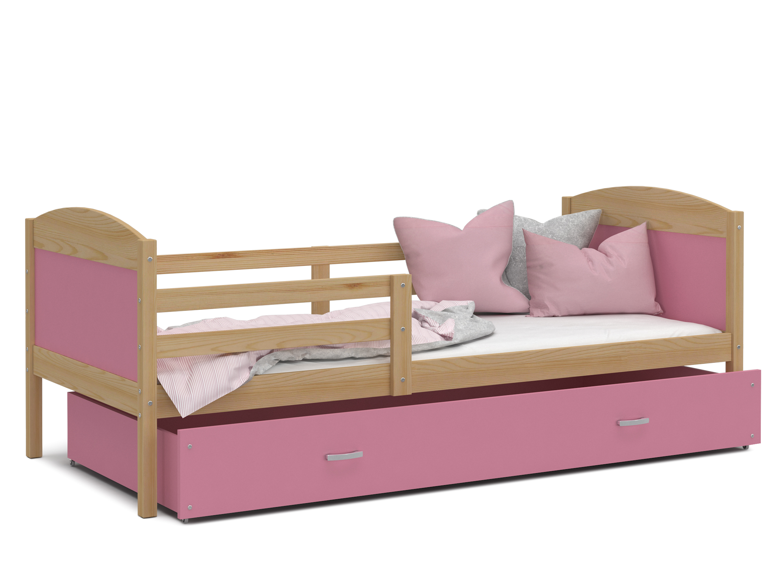 Dětská postel se šuplíkem MATTEO - 200x90 cm - růžová/borovice