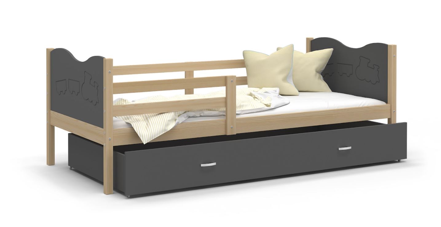 Dětská postel se šuplíkem MAX S - 160x80 cm - šedá/borovice - vláček