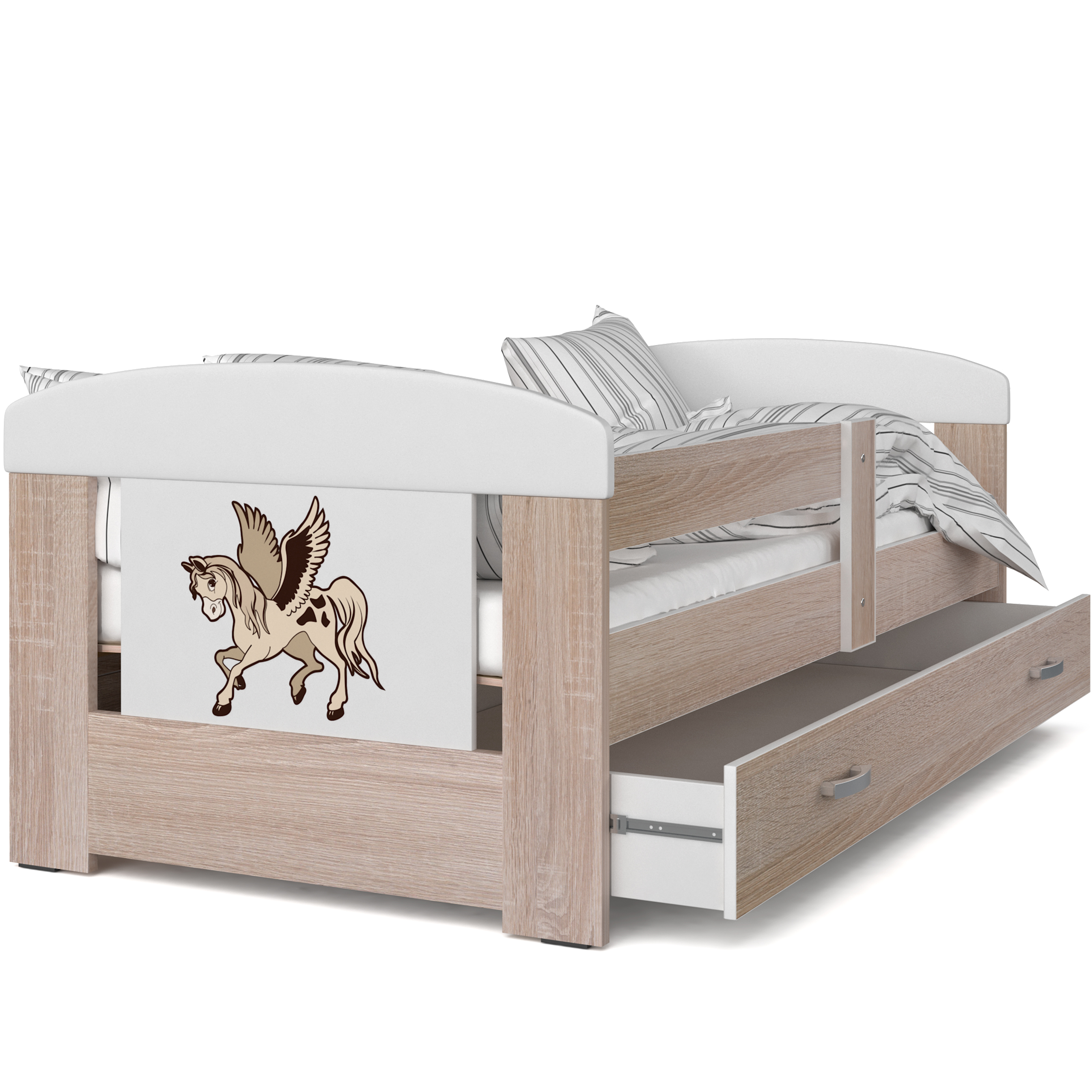 Dětská postel se šuplíkem PHILIP - 140x80 cm - sonoma/jednorožec
