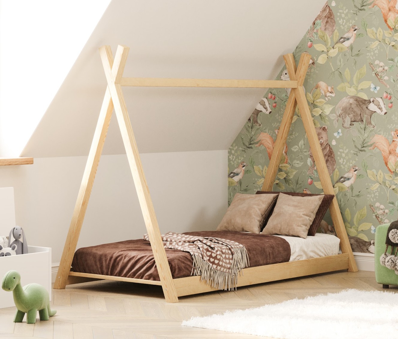 Moderní dětská postel ve tvaru indiánského teepee je dokonalým spojením postele a místa, kde si mohou vaše děti hrát. Jejich konstrukce je pevná a odolná. Postel je vyrobena z kvalitního borovicového dřeva. Části postele jsou zaoblené, tím pádem minimalizují případné poranění dítěte. Materiál i celá postel splňují všechny bezpečnostní normy. Dětská postel je dostupná v několika barevných variantách. Vy tak budete mít možnost sladit postel skvěle s dětským pokojem a přivést interiér k dokonalosti. Vaše děti si tuto postel zamilují!