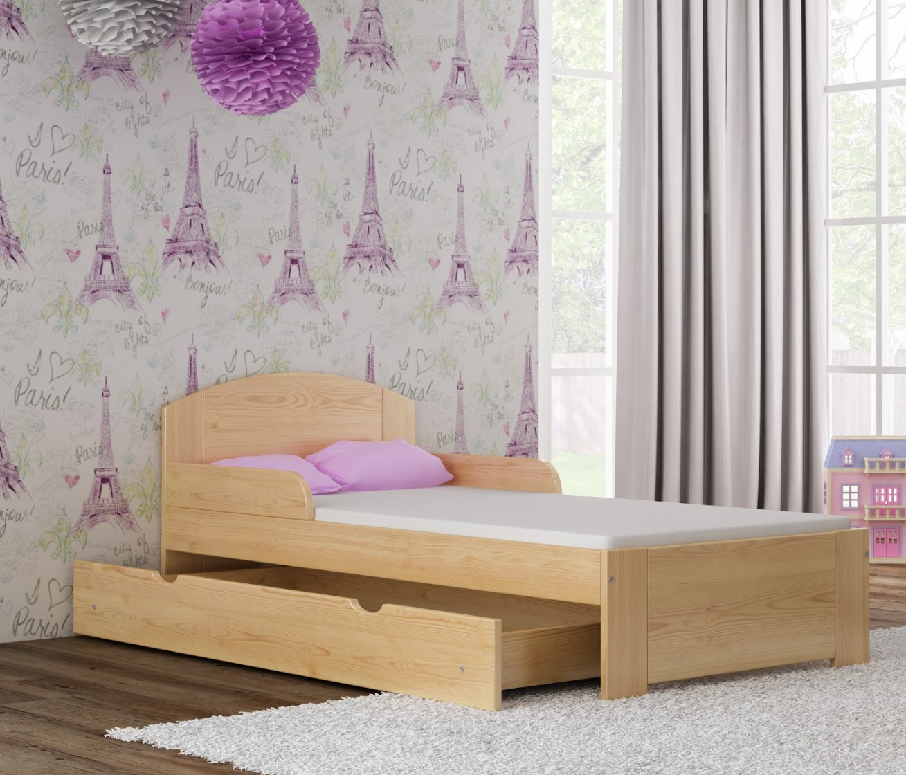 Postel je vyrobena z vysoce kvalitního borovicového dřeva se zvýšenou nosností až na 100 kg. Součástí postele jsou dvě pevně připevněné ochranné bariéry, které slouží k ochraně proti pádu vašeho dítěte. Dětská postel zaujme svým krásným vzhledem a vytváří tak komplexní prvek, který se bude vyjímat v každém dětském pokoji.