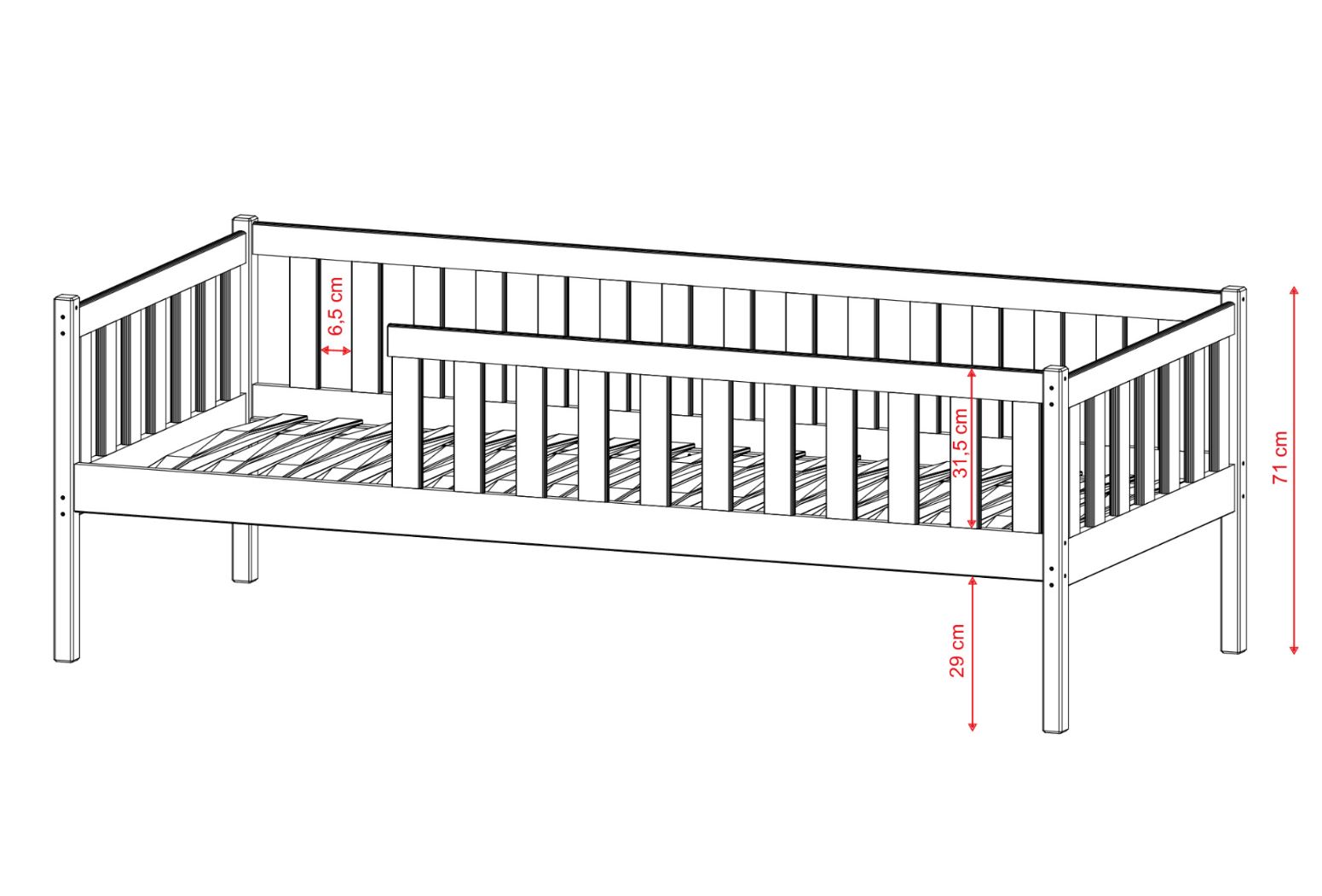 Dětská postel z masivu borovice AIDA patří mezi dětské postele, které se vyznačují jednoduchým designem. Postel je pečlivě vyrobená, má pevnou konstrukci a je propracována do posledního detailu. Borovicové dřevo, které se k její výrobě používá, je té nejvyšší kvality. Postel je odolná proti poškrábání a to díky třem vrstvám ekologického laku s certifikací EN 71-3 : 2013. Lak je bez zápachu a vyznačuje se vynikající světlostálostí. Konstrukce postele je uzpůsobena tak, aby zabránila pádu dítěte, a to díky ochranným bariérám. Součástí postele je pevná ochranná bariéra, díky které je postel vhodná i pro nejmenší děti. Vaše dítě se tak bude cítit v klidu a bezpečí. Dětská postel zaujme svým krásným vzhledem a vytváří tak komplexní prvek, který se bude vyjímat v každém dětském pokoji.