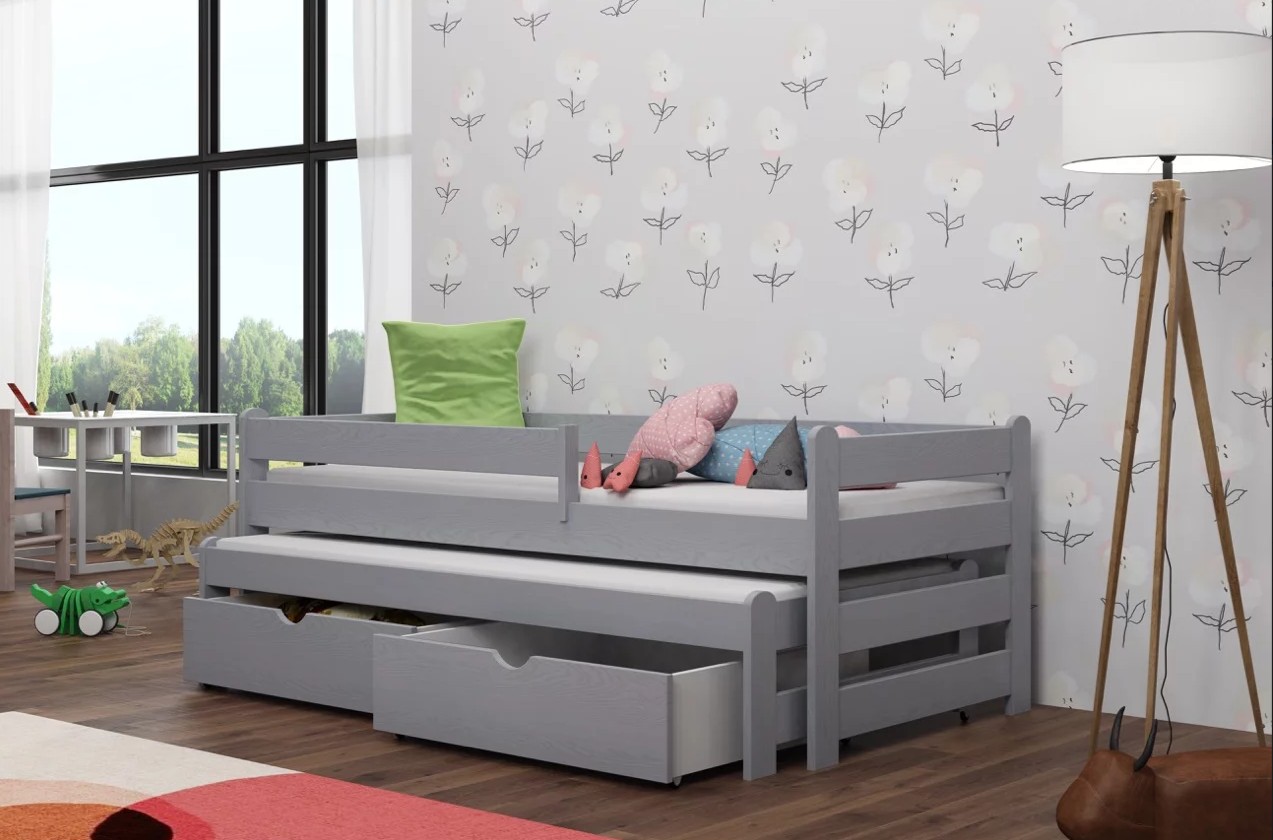 Dětská postel z masivu borovice ALEX s přistýlkou a šuplíky - 200x90 cm - ŠEDÁ