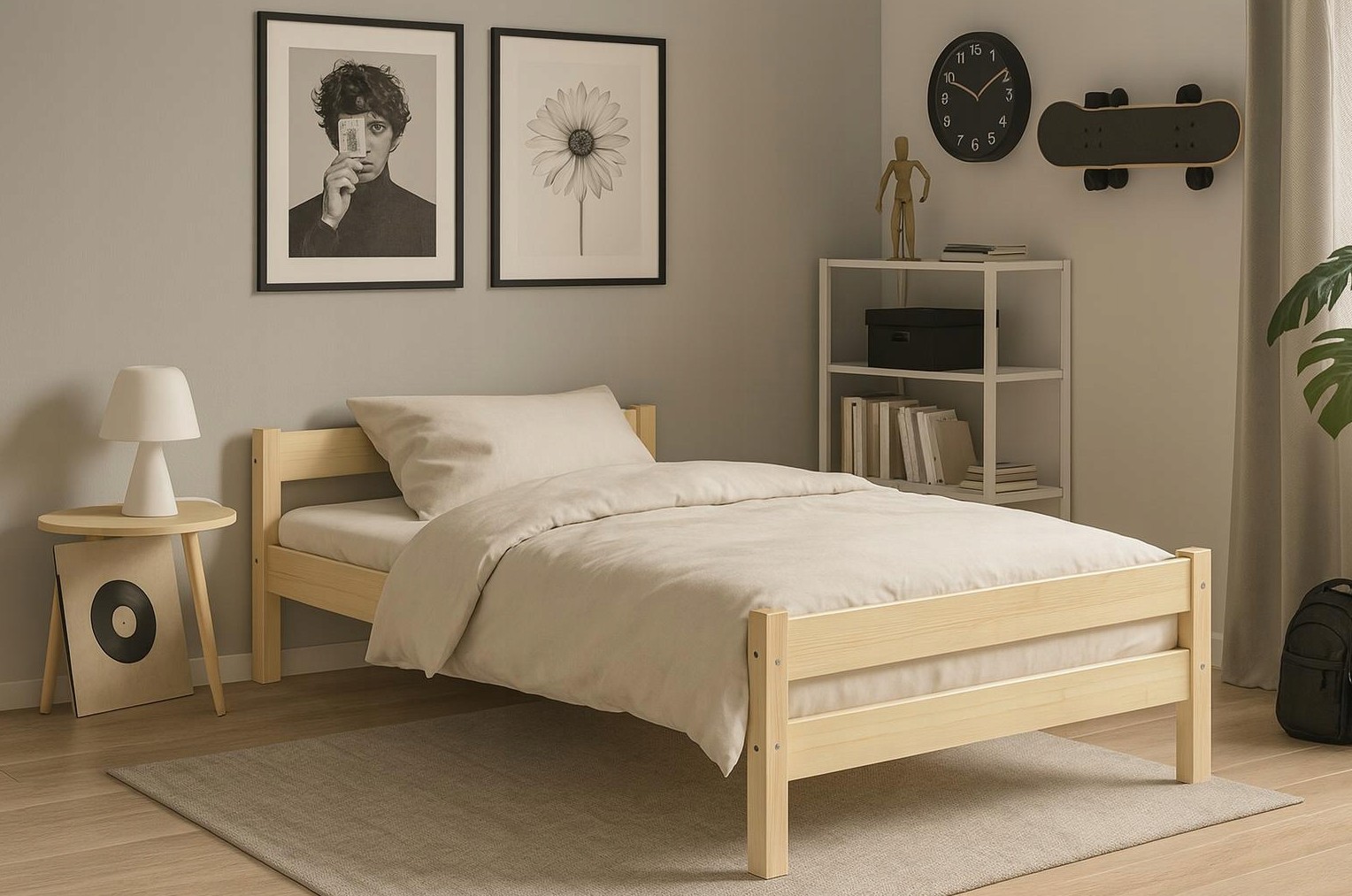 Dětská postel ALEXANDR se vyznačuje jednoduchým designem a konstrukcí, které se budou hodit do moderních skandinávských i klasických interiérů. Postel je vyrobena z masivního borovicového dřeva bez povrchových úprav, což nabízí přirozený vzhled. Postel je ekologická, odolná a lze ji snadno přizpůsobit - její vzhled můžete upravit mořením, lakováním nebo malováním dle vlastního uvážení. Přírodní, neupravený povrch umožňuje nábytku dýchat a je také ideální do dětských pokojů a pokojů pro alergiky. Postel kombinuje funkčnost, odolnost a estetiku a vytváří příjemný prostor pro spánek a odpočinek. Součástí postele je také pevný a odolný flex rošt vyrobený z březových lamel.
